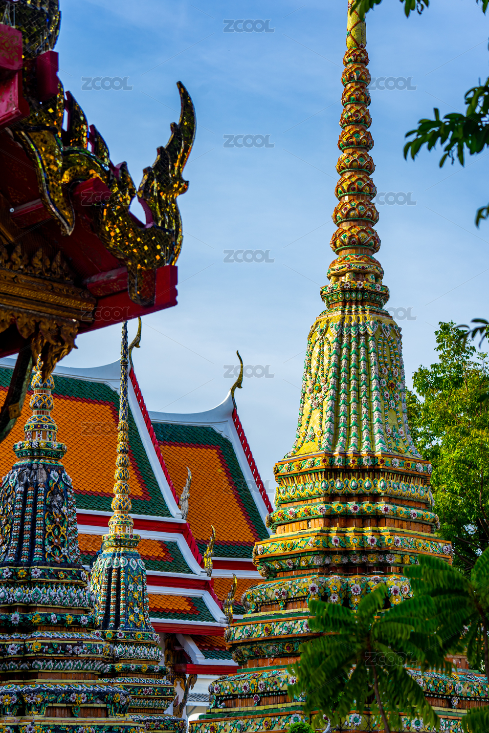 东南亚泰国曼谷卧佛寺佛塔风景竖构图