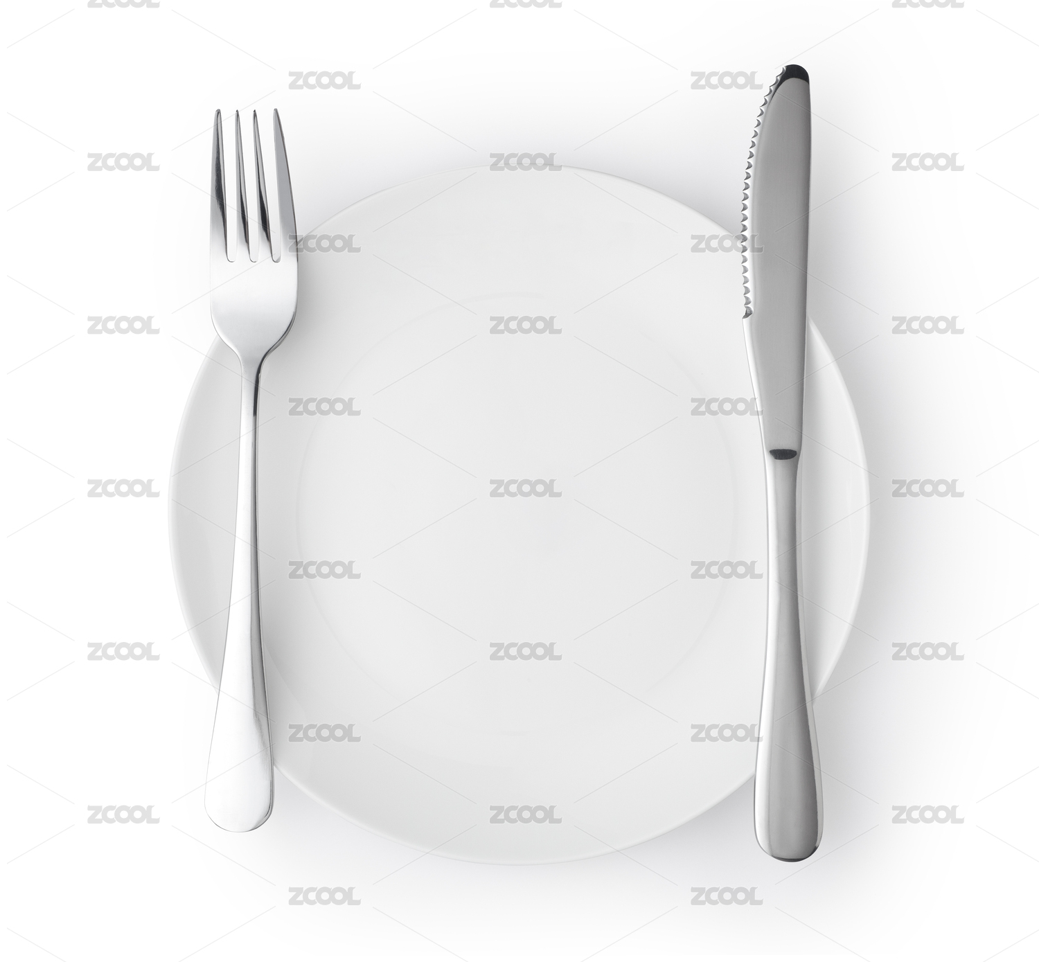 空盘子和刀叉在白色背景上