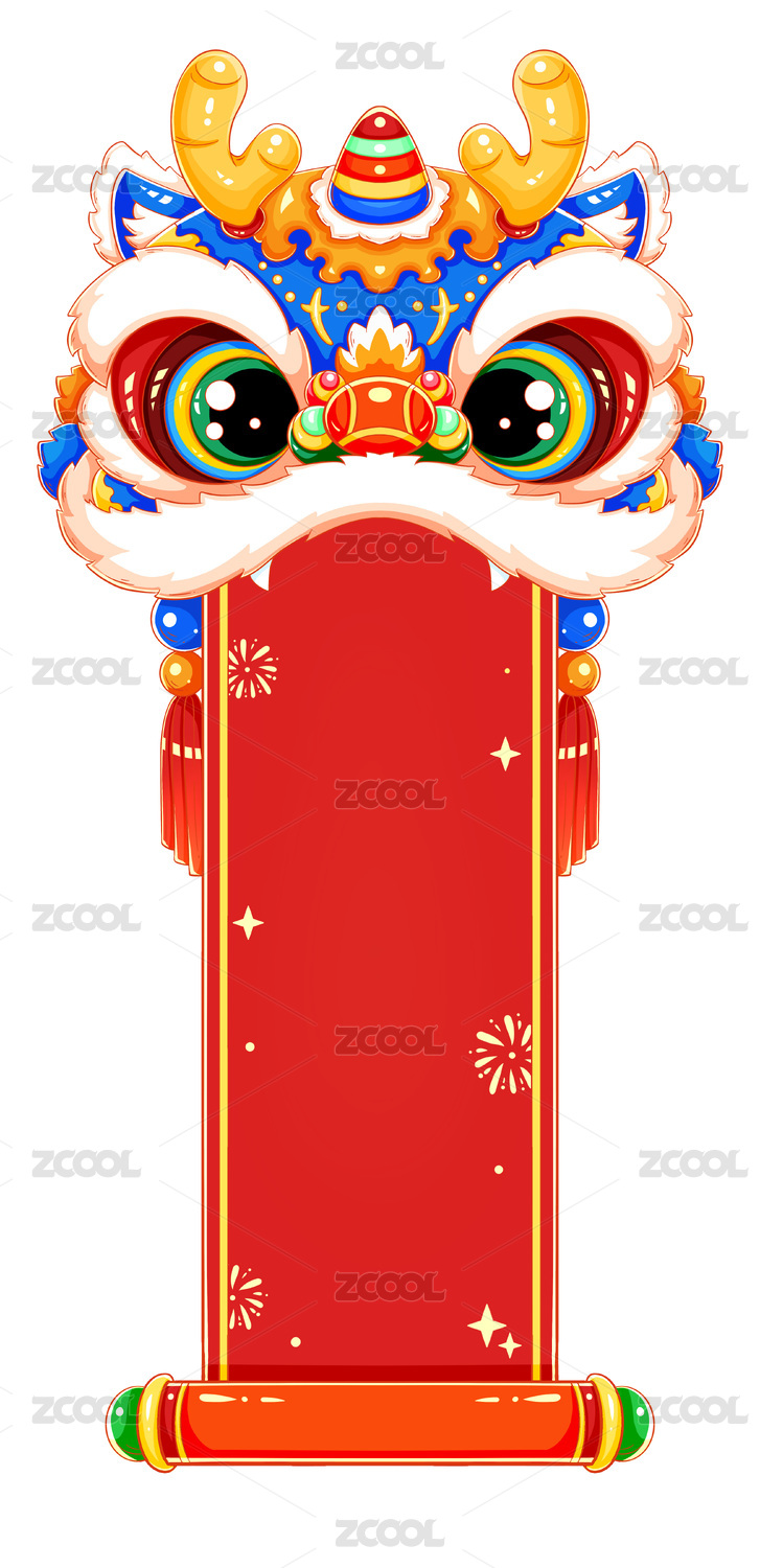 手绘舞狮狮子头矢量插画h5贺卡片设计素材