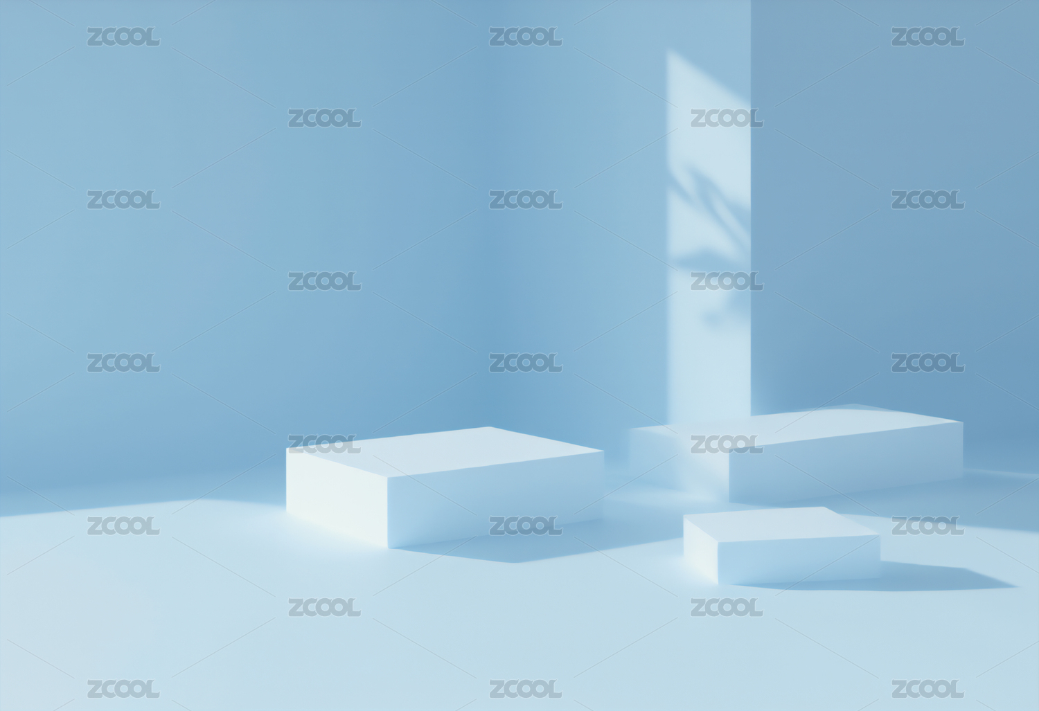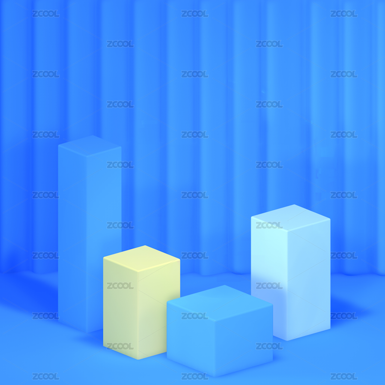 三维渲染的圆形方形蓝色几何体展台背景创意