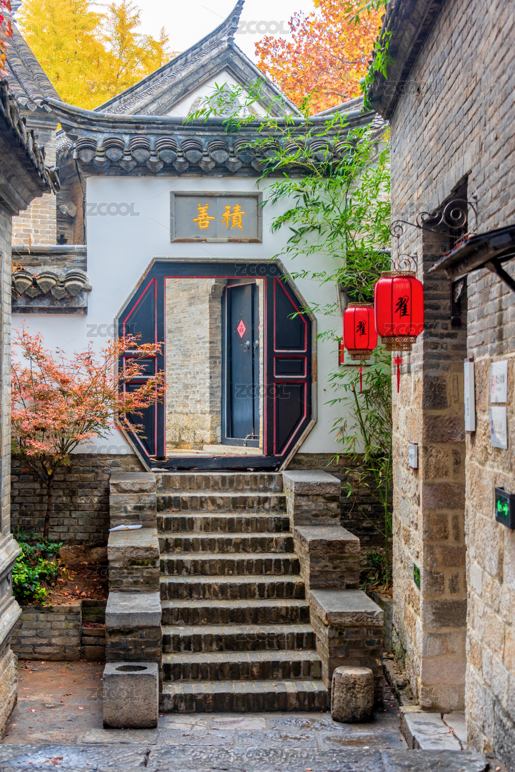 中国山东省潍坊市十笏园景区老巷子里的中式门楼