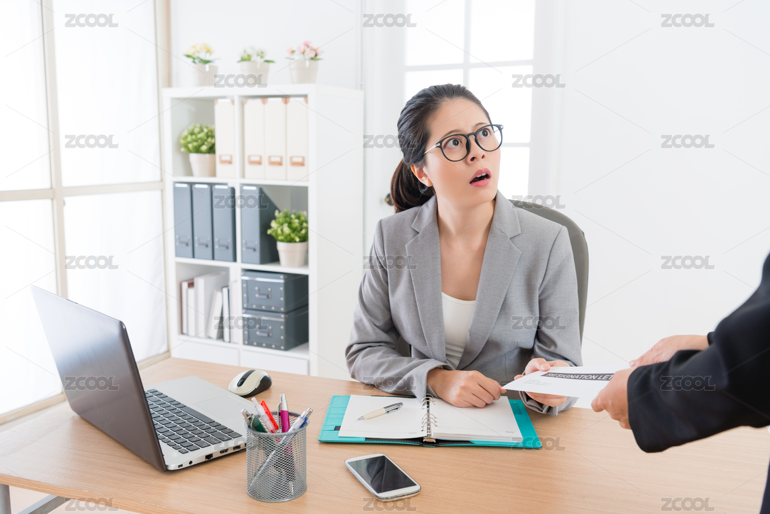美丽优雅的女老板经营接到上班族员工感到震惊的辞职信。
