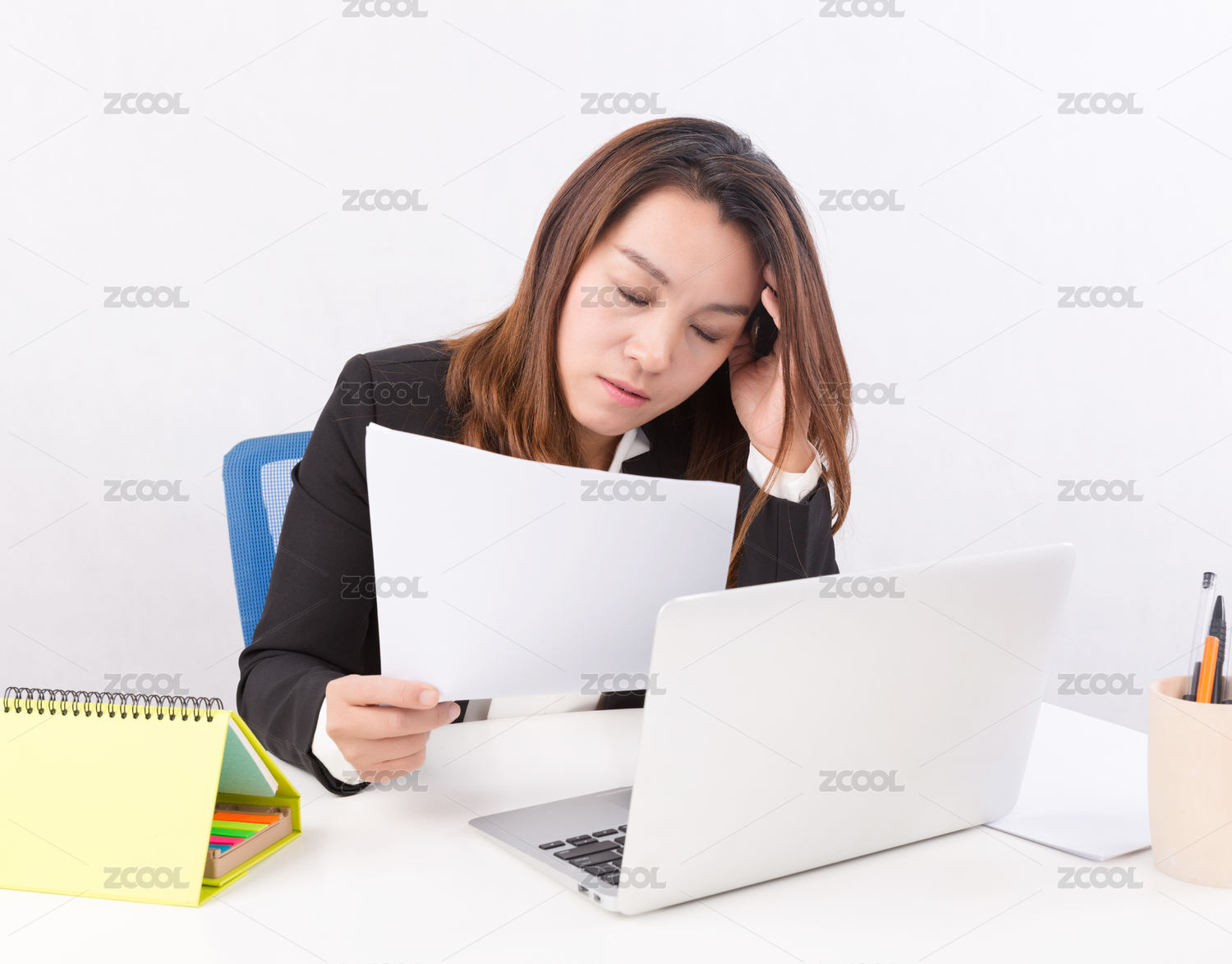 焦虑的上班族白领女性无奈的看着文件