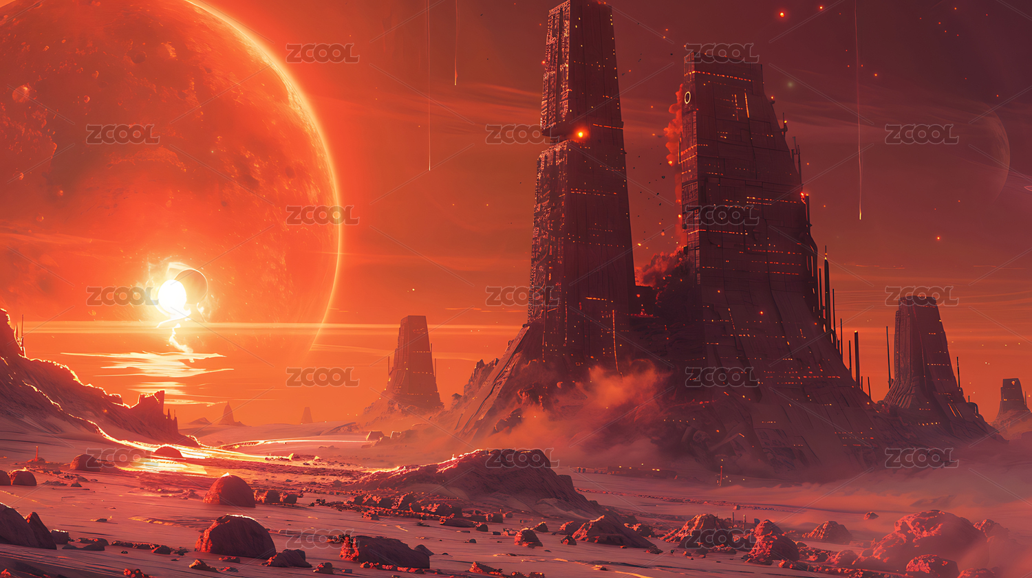 荒凉背景下的沙漠城堡场景设定