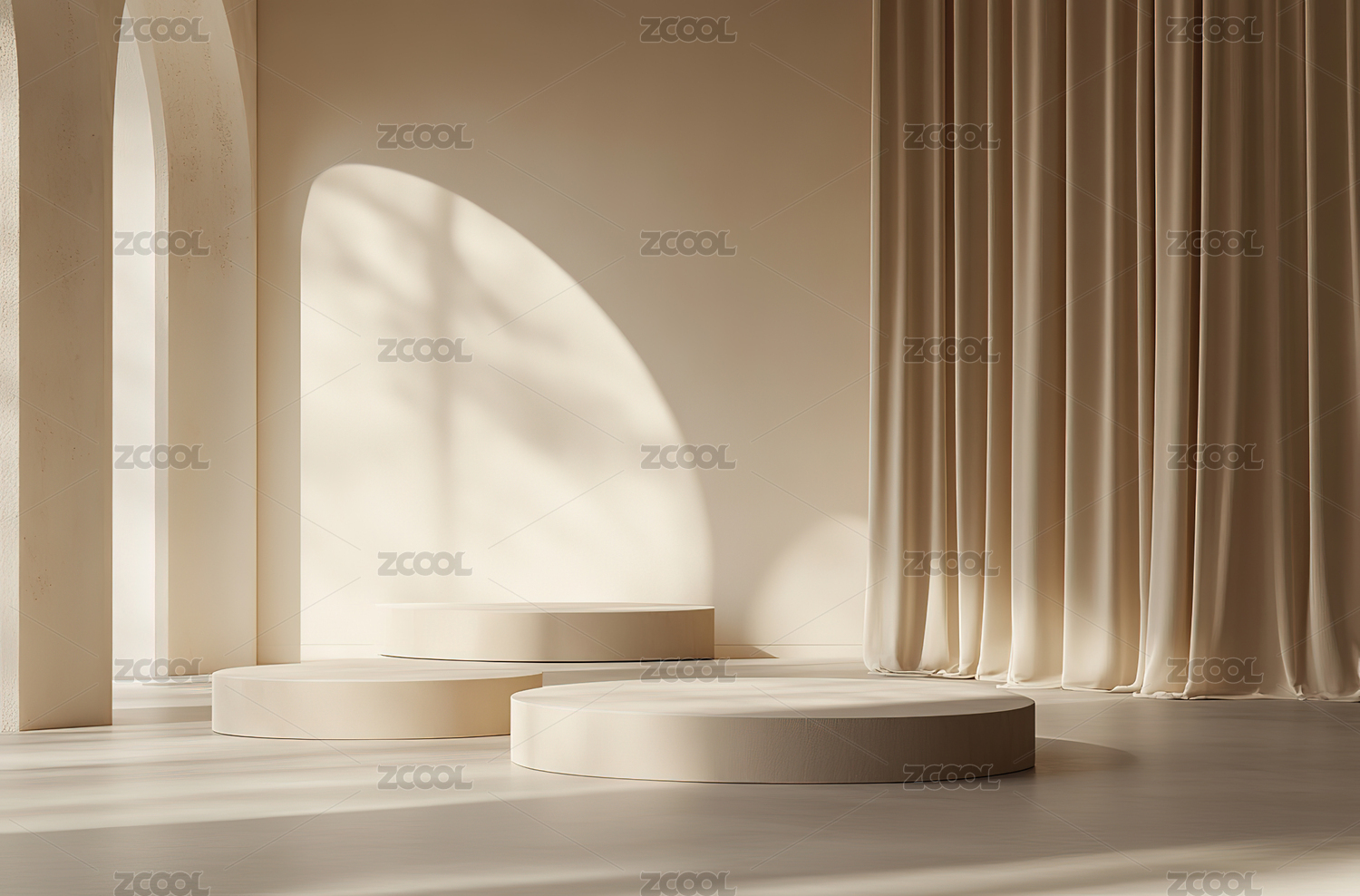 场景,光线,空间,白色,大理石,舞台,圆形,圆柱形,基座,展台