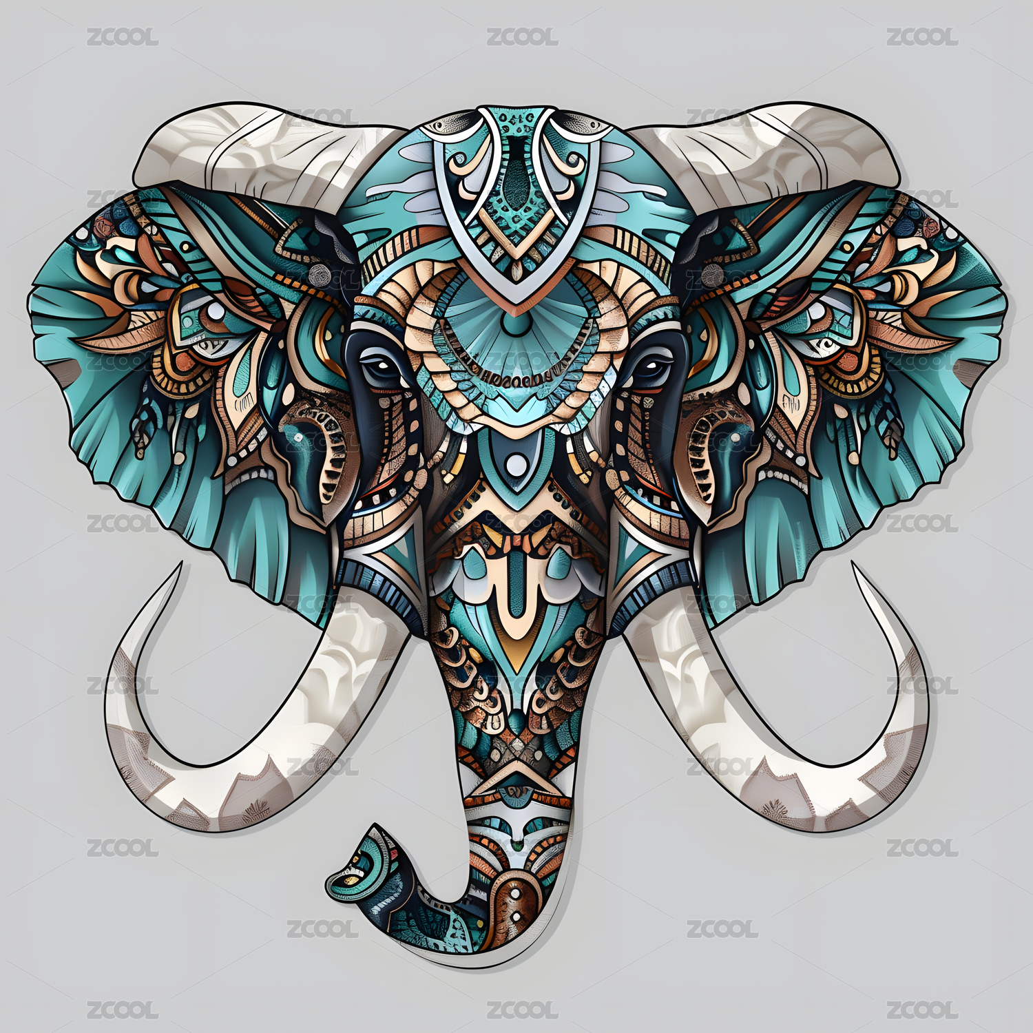 抽象,大象,象,头部,象鼻,插画,插图,复古,可爱,卡通