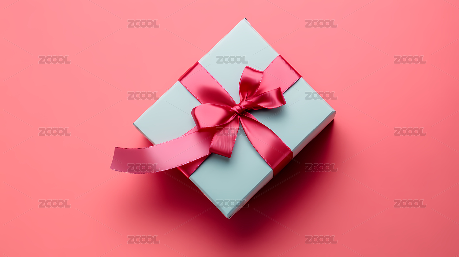 一个粉红色礼物盒子上面一个粉红色蝴蝶结图