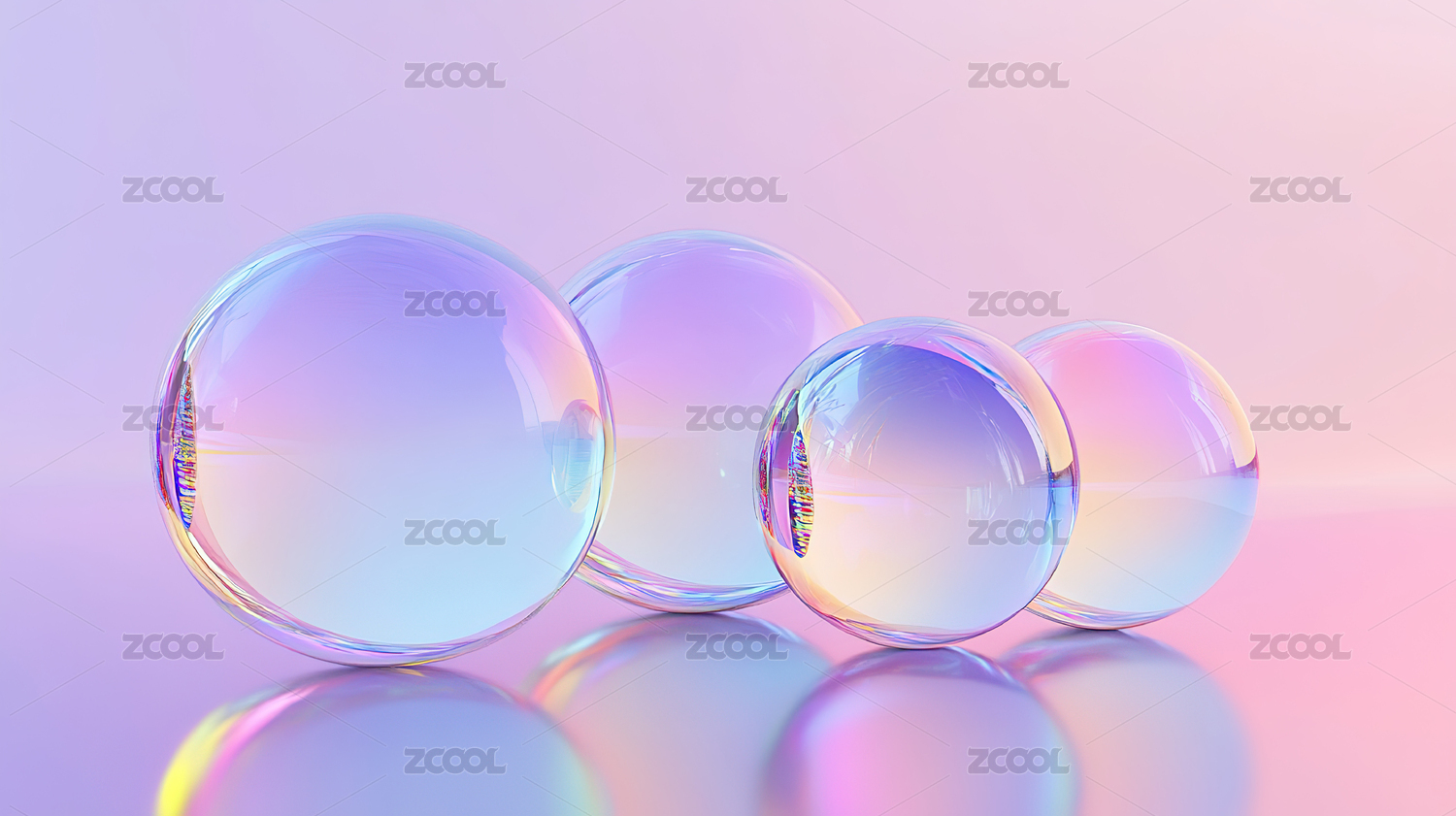 彩色背景下桌子上的玻璃和水晶球特写镜头