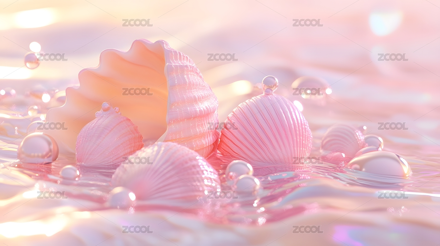 浪漫,粉色,沙滩,海边,贝壳,大海,海,海水,未来主义,Y2K