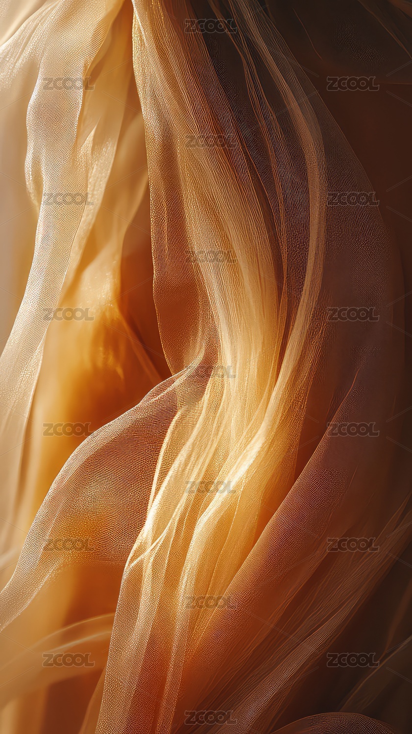 金黄色纱幔褶皱光影交错质感柔和