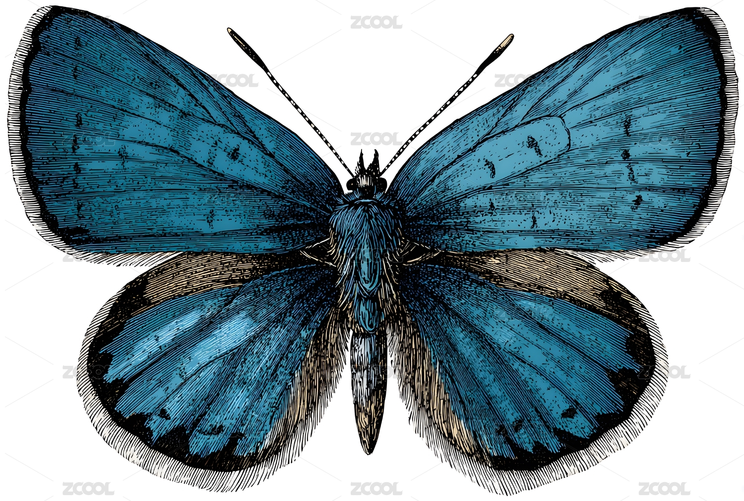 蓝色蝴蝶展开翅膀特写,自然景象,生机勃勃