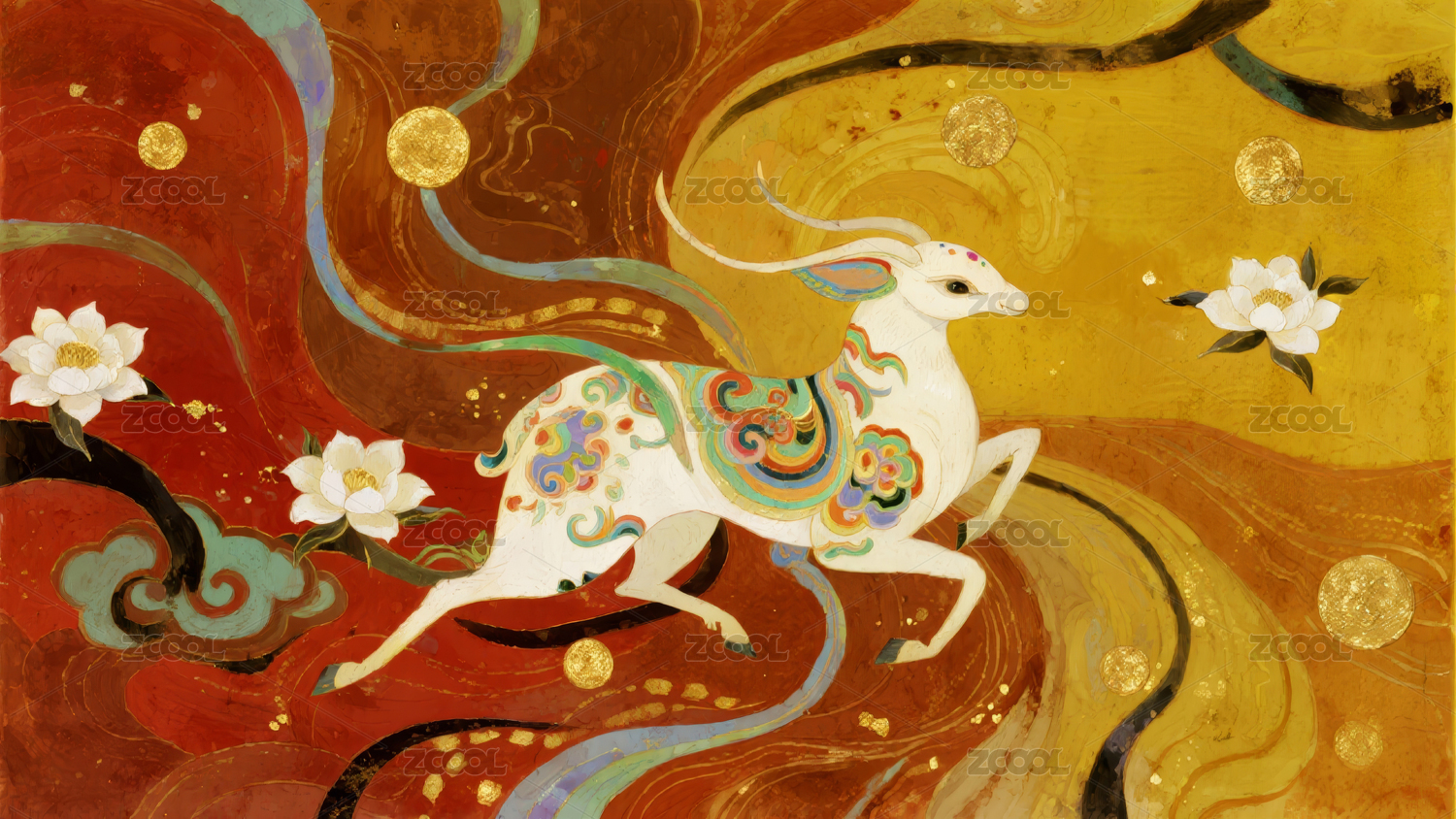 插画,中国文化,飞天,九色鹿,传统文化,壁画,古典风格,乐器,亮色调,艺术