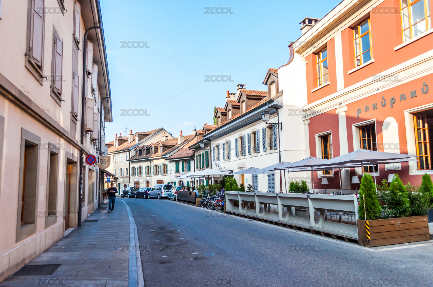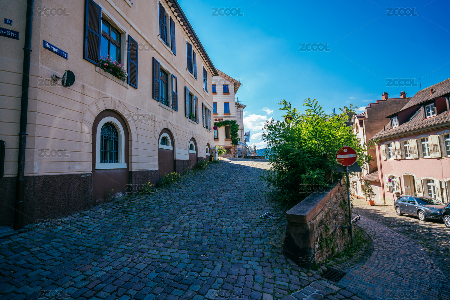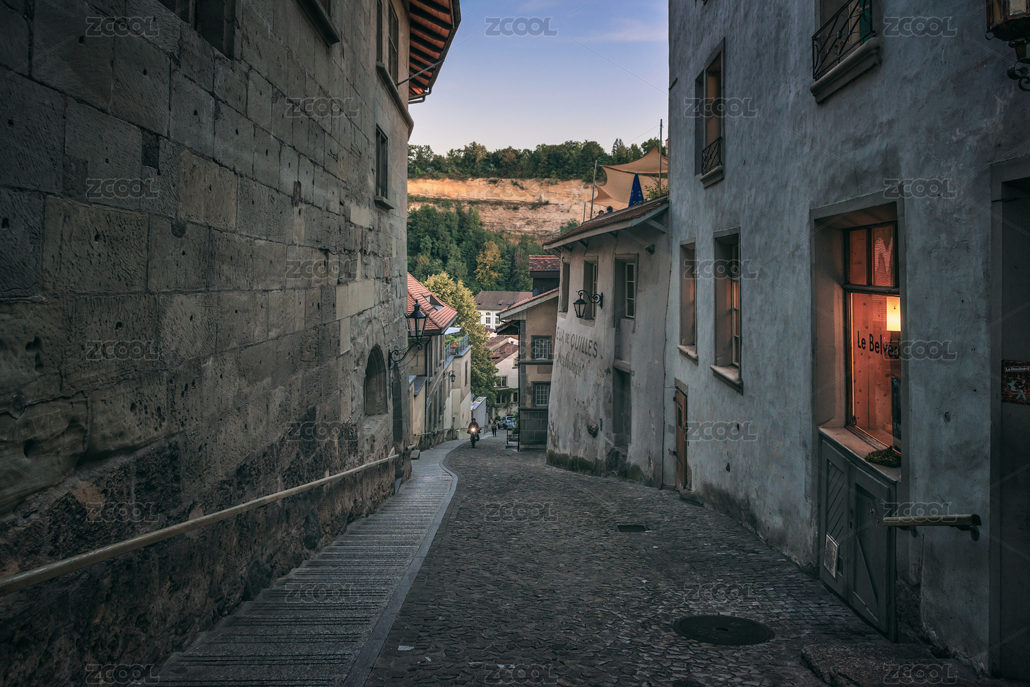 欧洲瑞士高原城市弗里堡城市下坡小巷