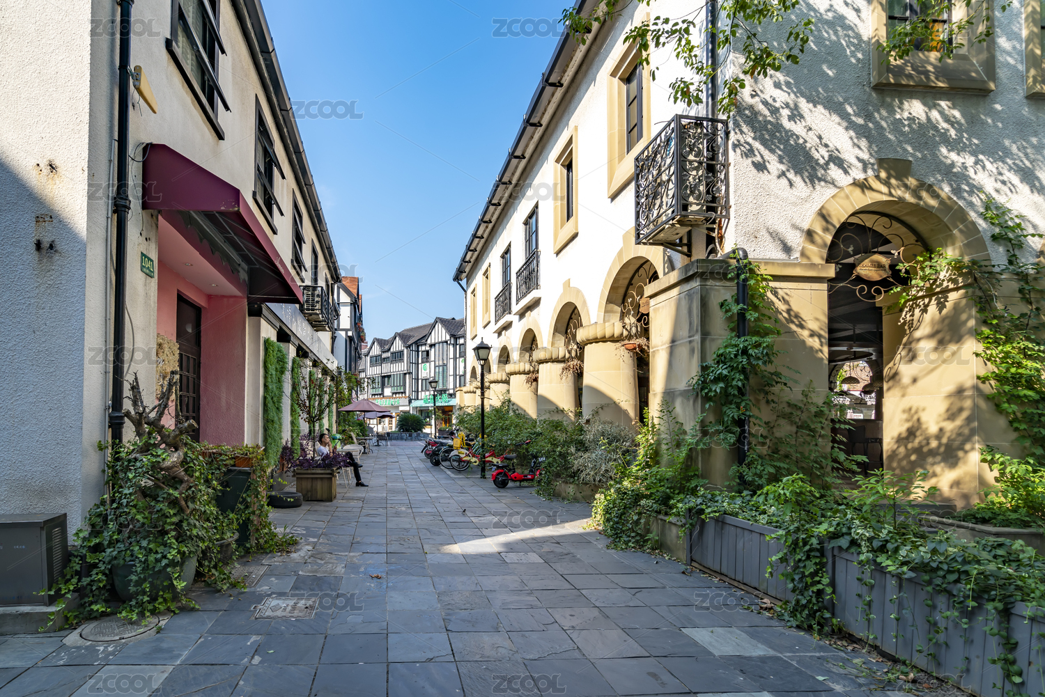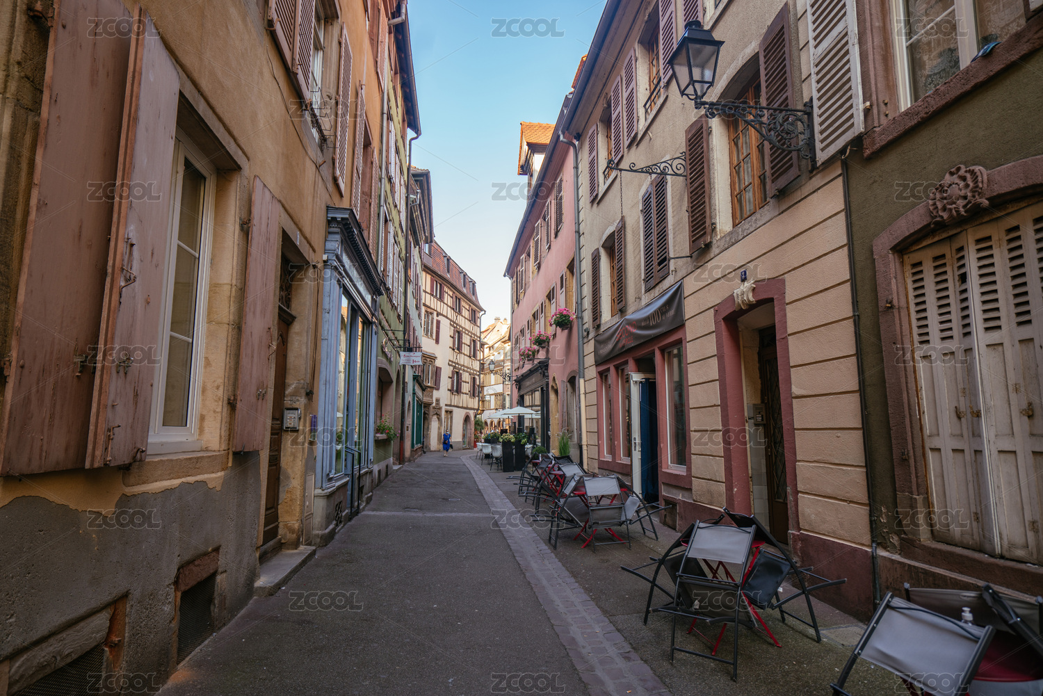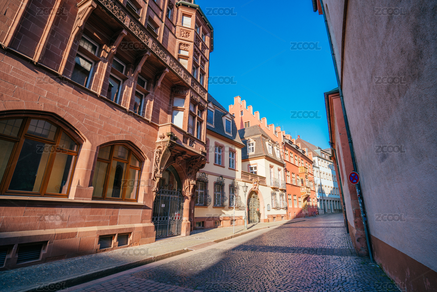 欧洲瑞士高原城市弗里堡城市下坡小巷
