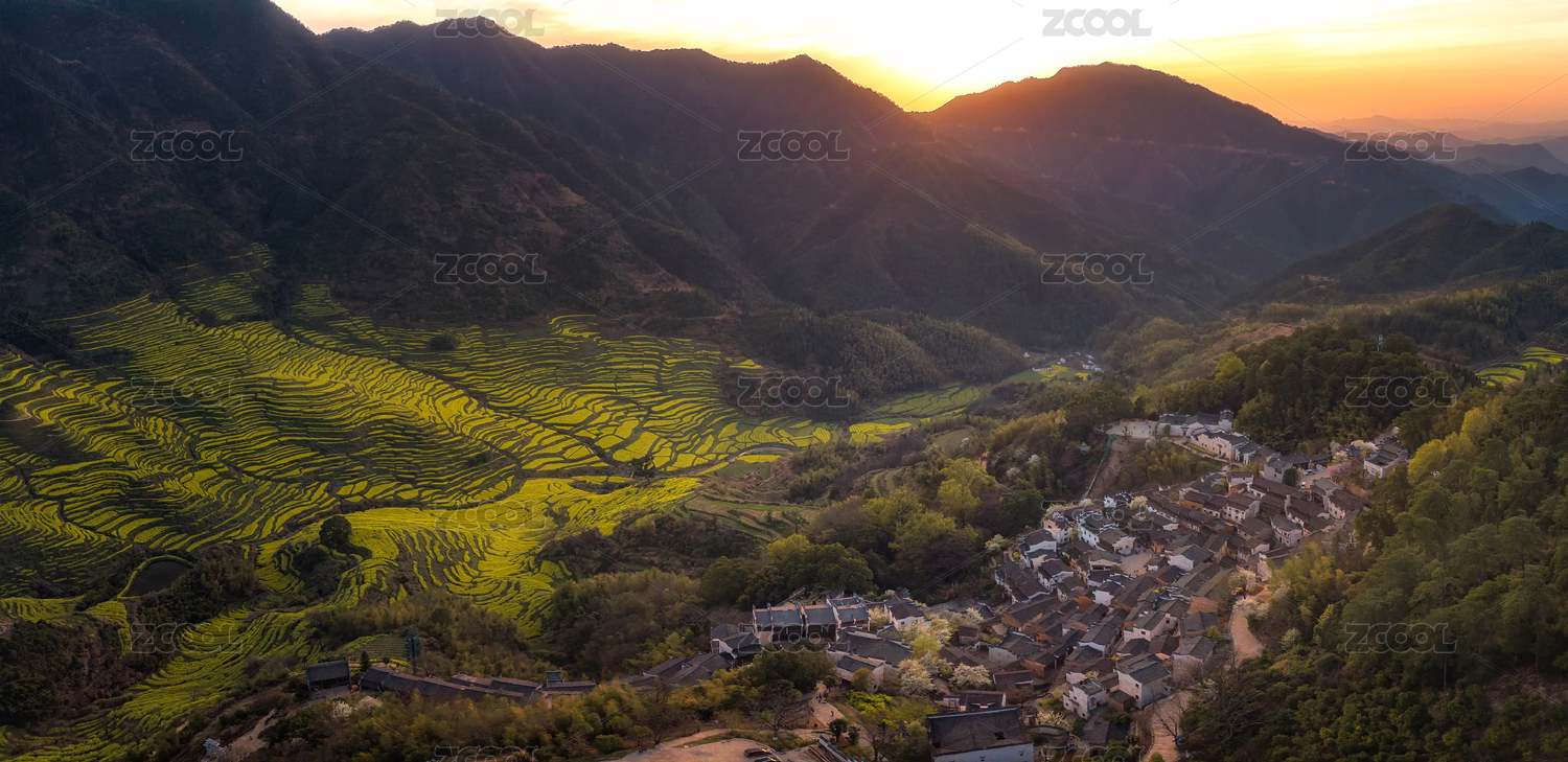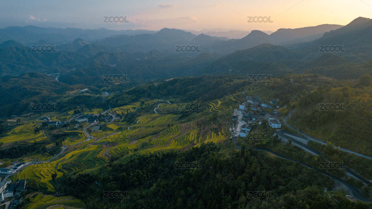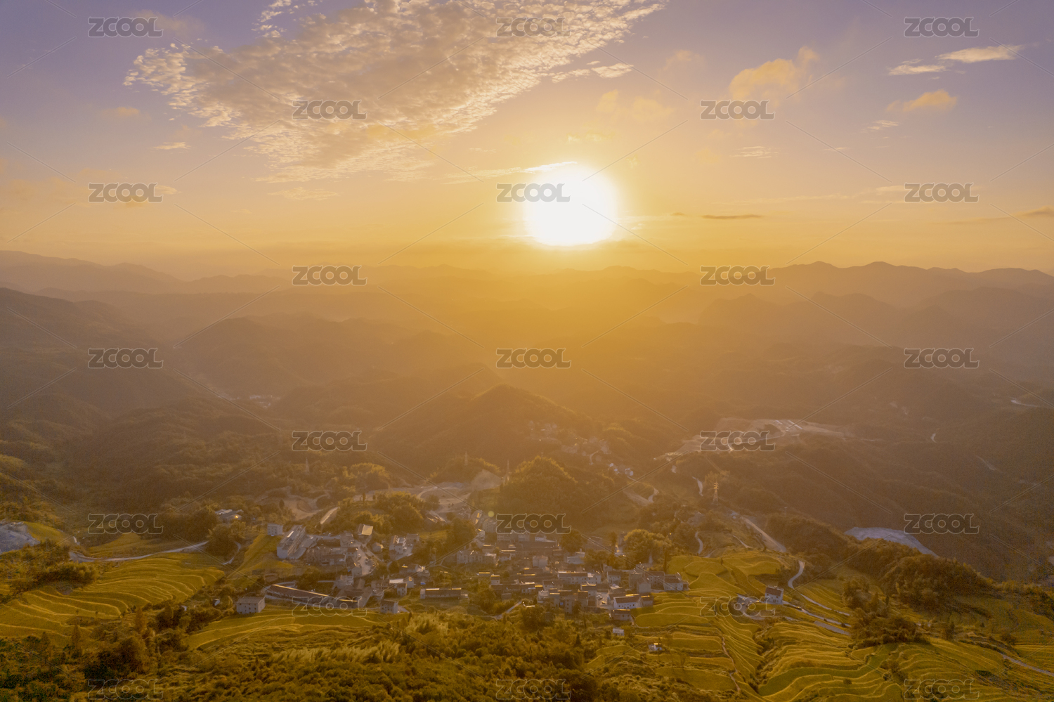 航拍中国江西婺源篁岭傍晚日落晚霞