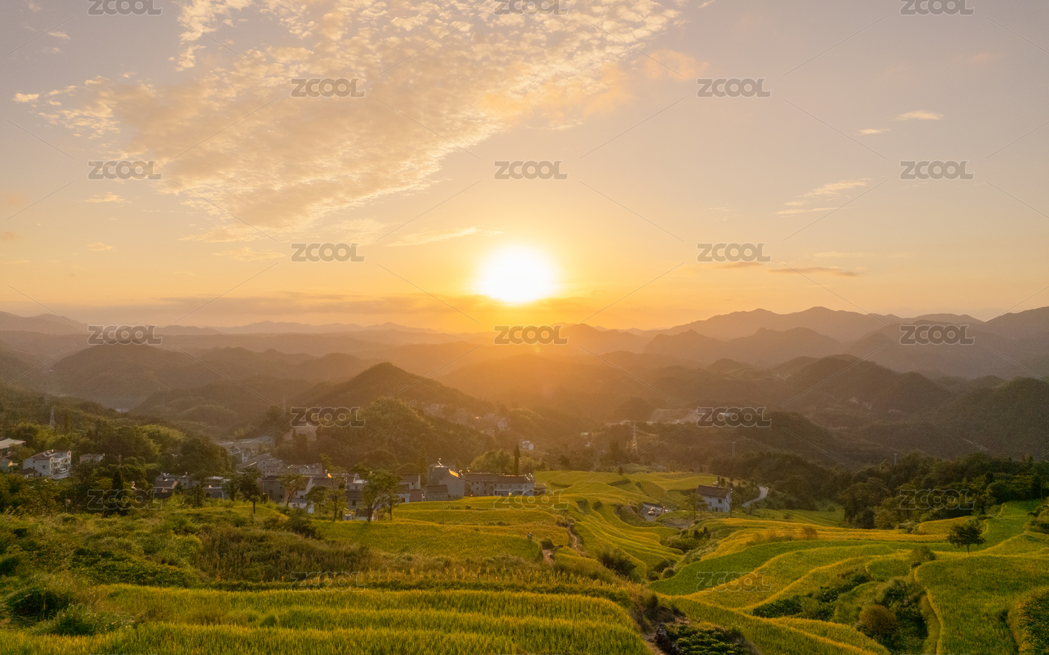 台州市,天台县,村庄,梯田,水稻,稻谷,成熟,丰收,秋分,秋收
