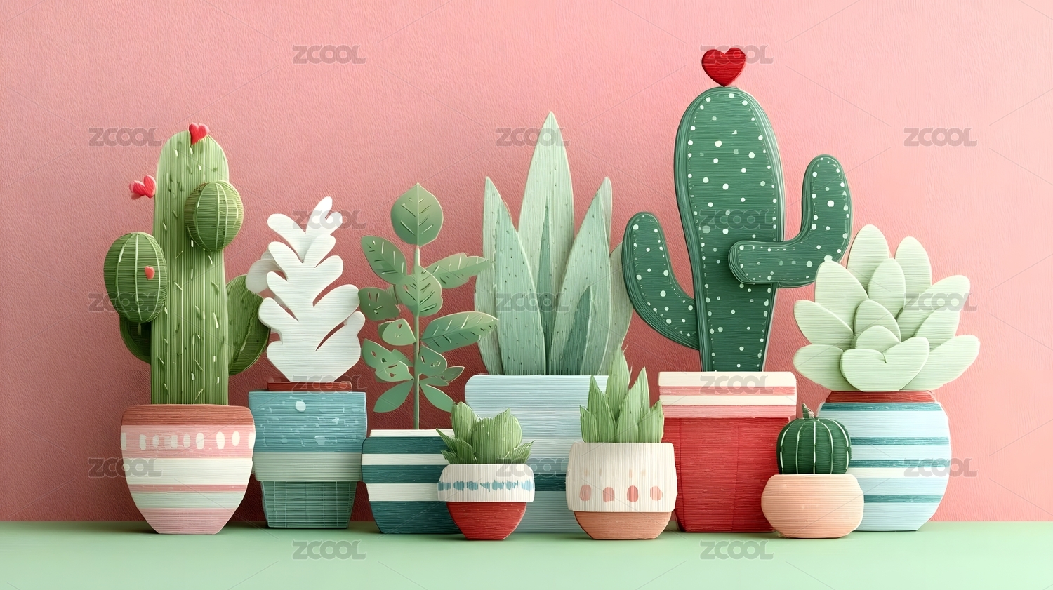 仙人掌,多样,组合,插画,花盆,可爱,植物,装饰,设计