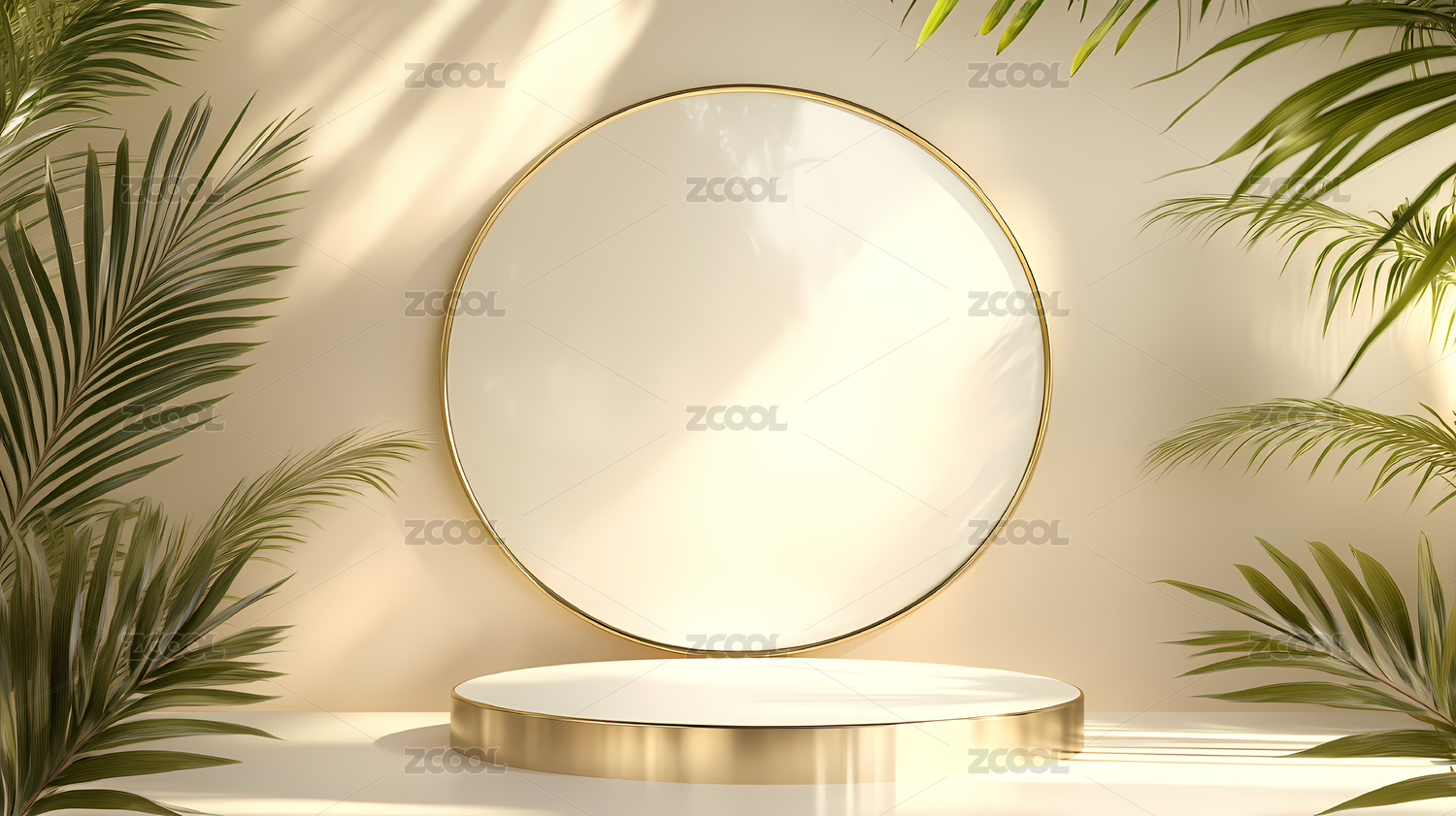 金色圆环的奶油色产品展示台
