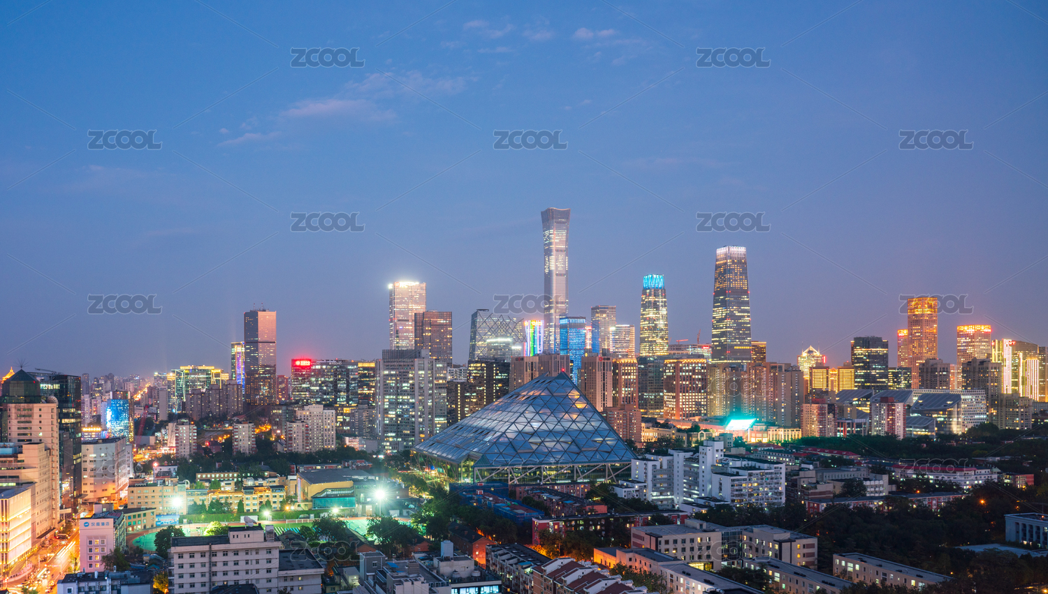 中国北京国贸中国尊中央电视台蓝调时刻夜景