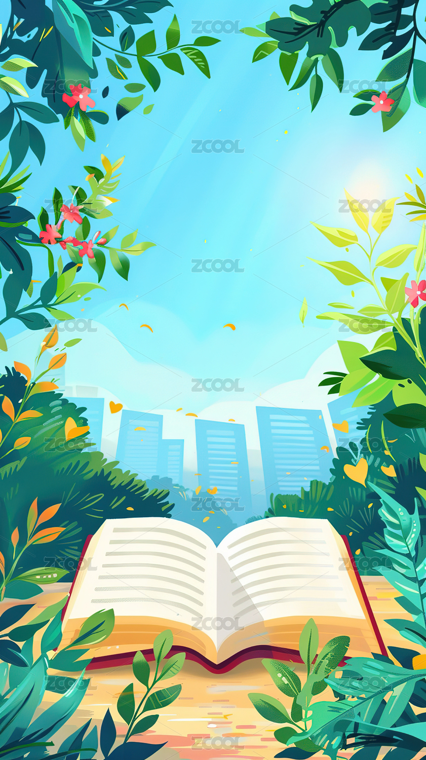 插画,炫彩,渐变,潮流,书本,蓝色,男性,少年,绿色,天空