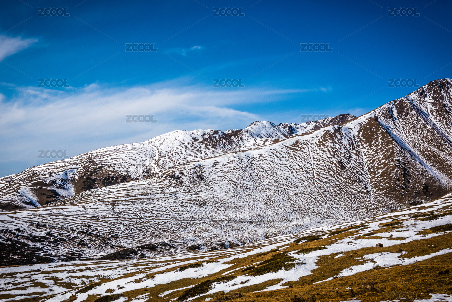 冬季中国青海省海西蒙古族藏族自治州祁连山南麓草原雪山