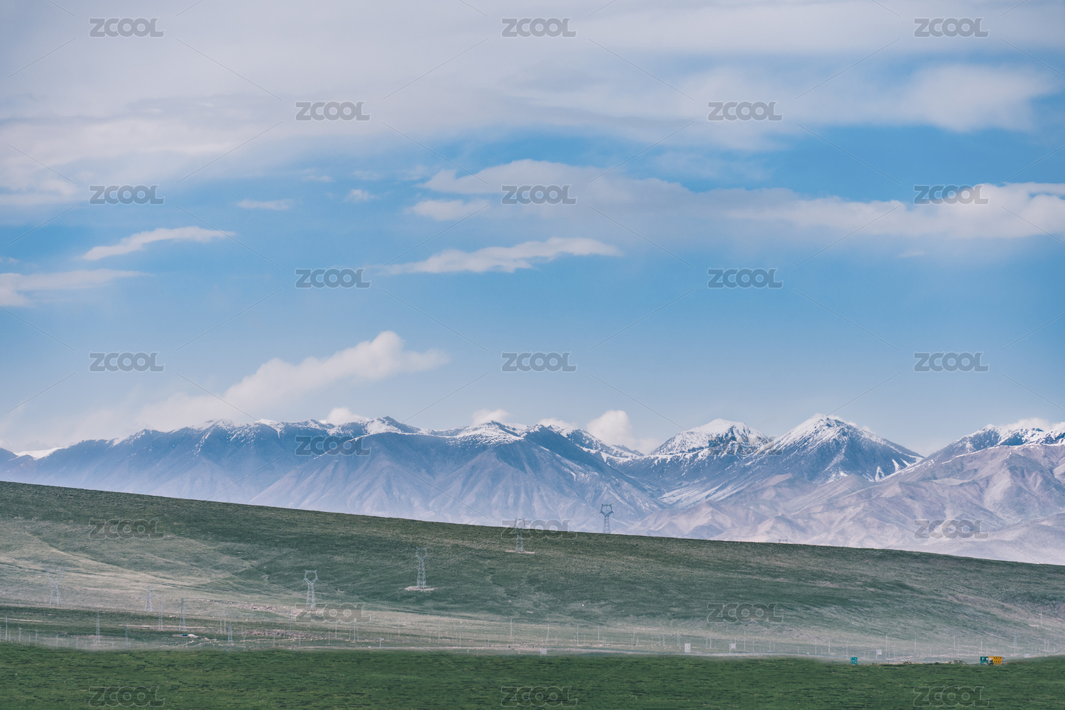甘肃省张掖市山丹军马场-祁连山脉雪山与牧