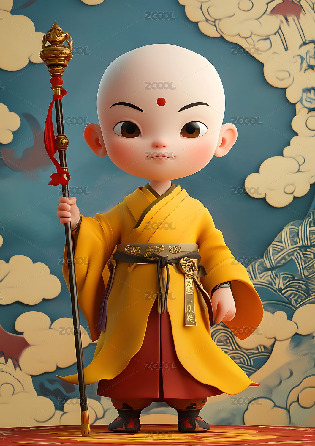 AIGC202407,插画,插图,角色,三维,卡通,形象,可爱,Q版,西游记