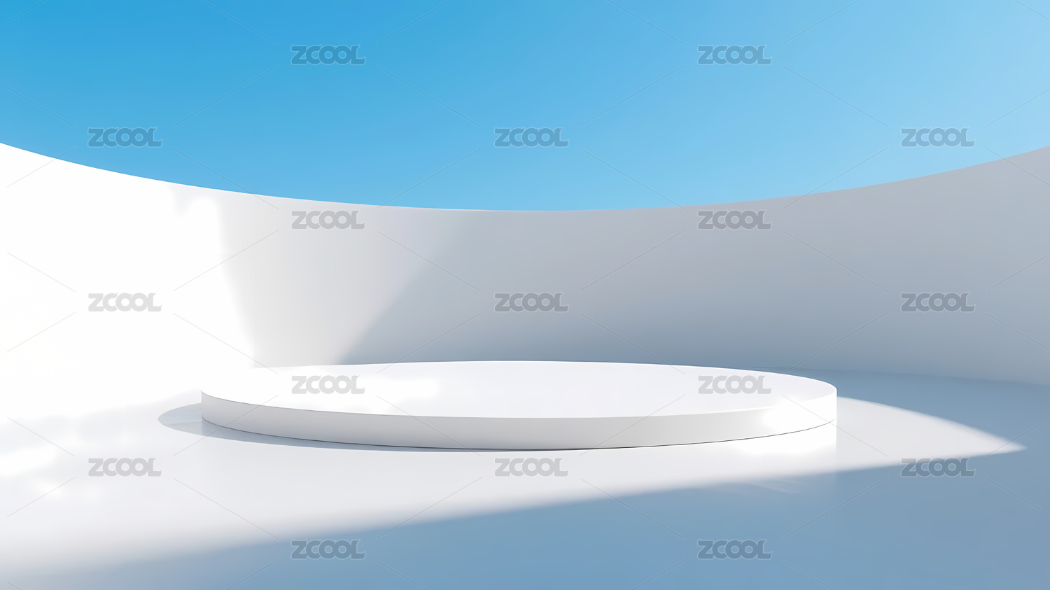 白色圆形讲台与蓝色背景