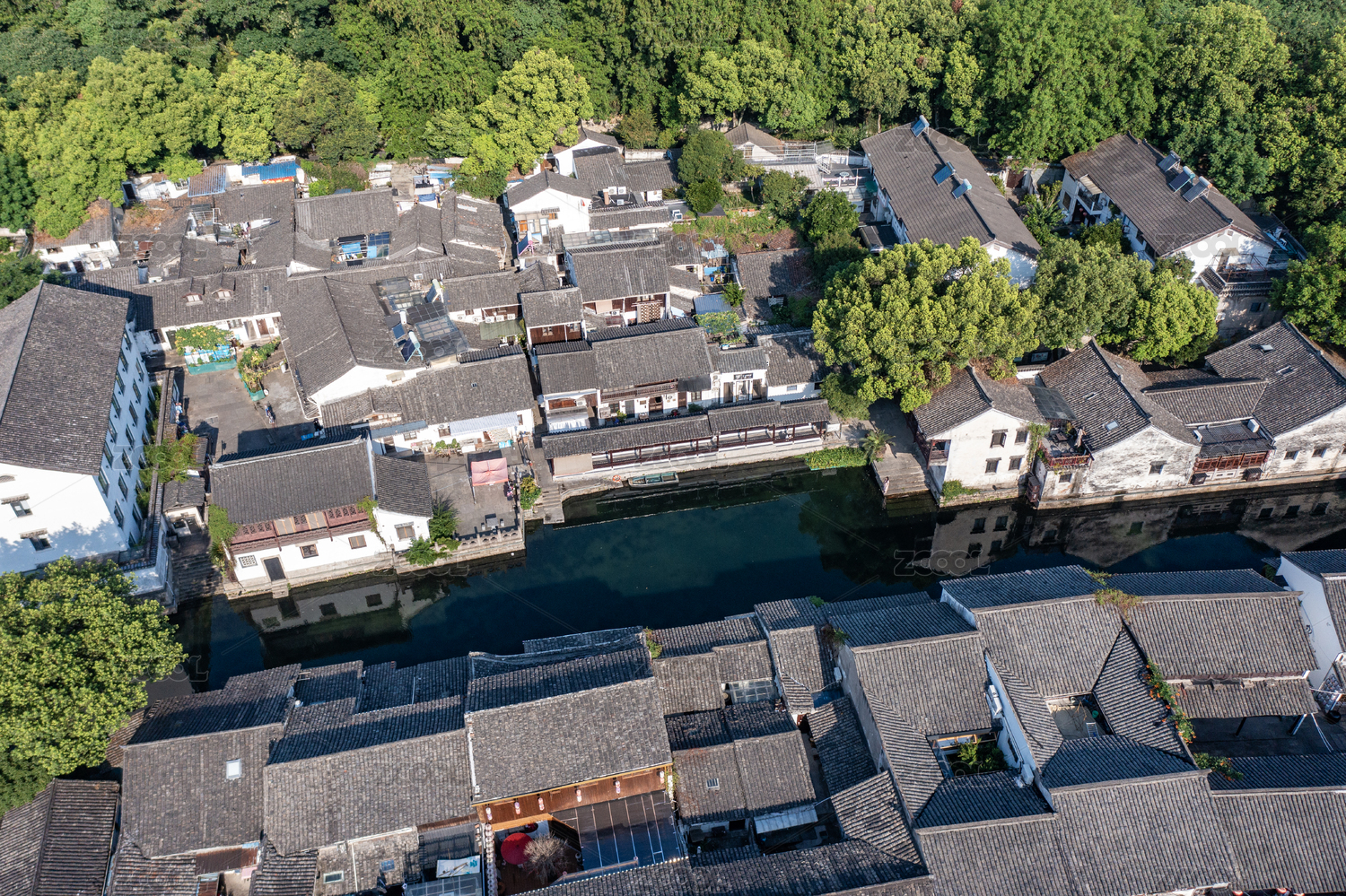 中国浙江温州楠溪江芙蓉古村航拍风光