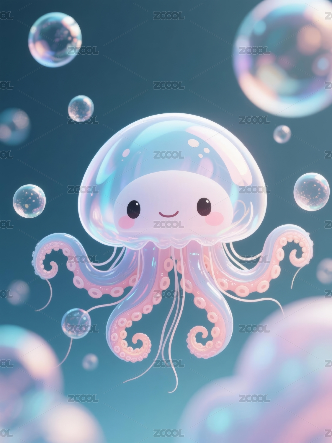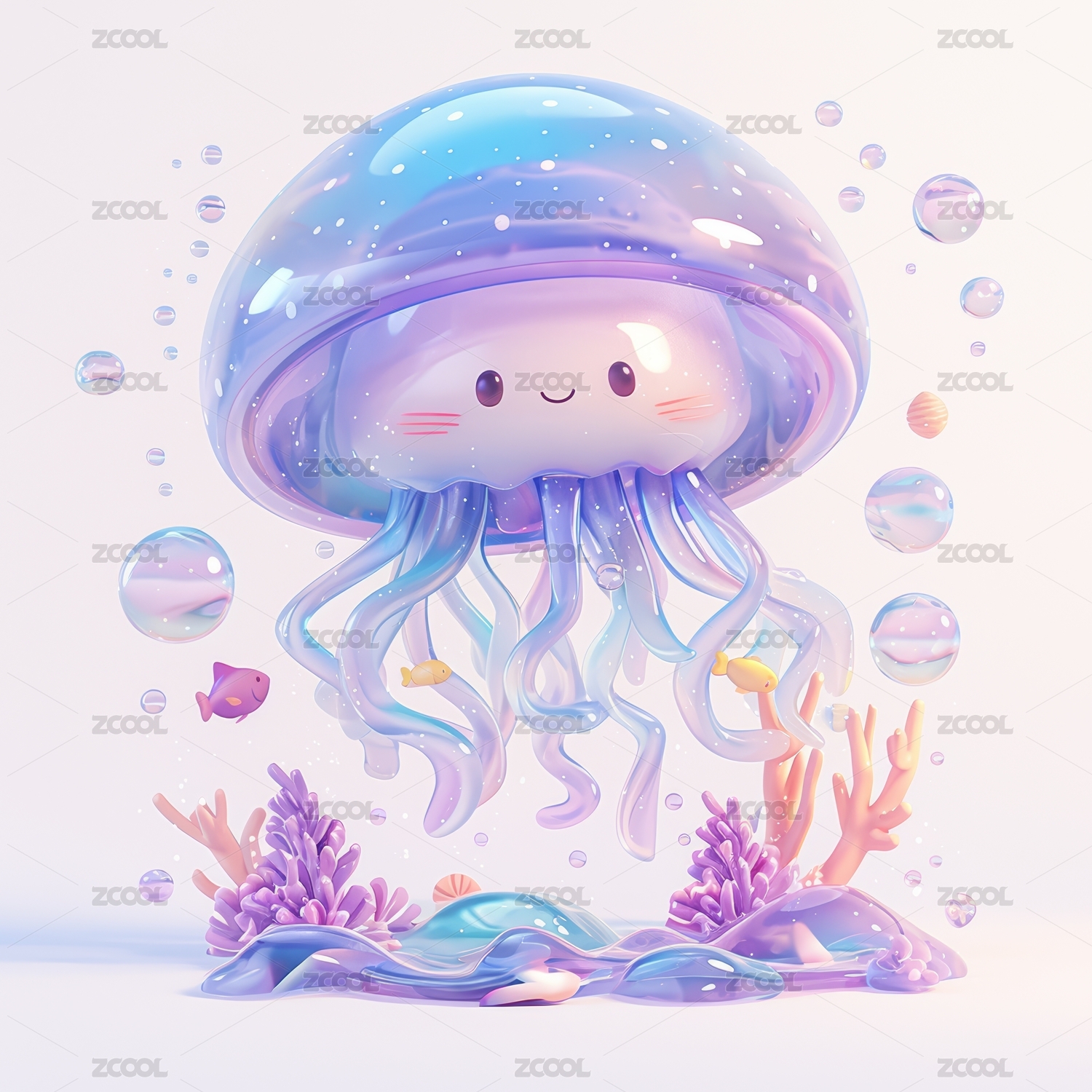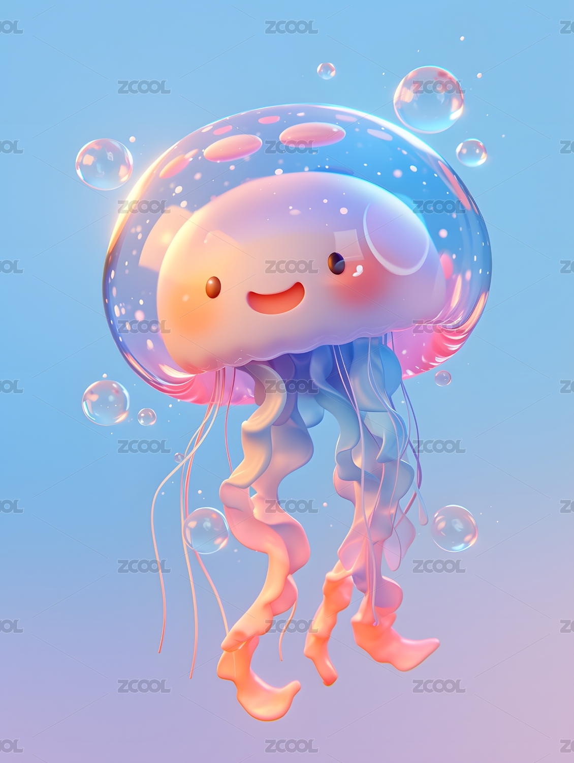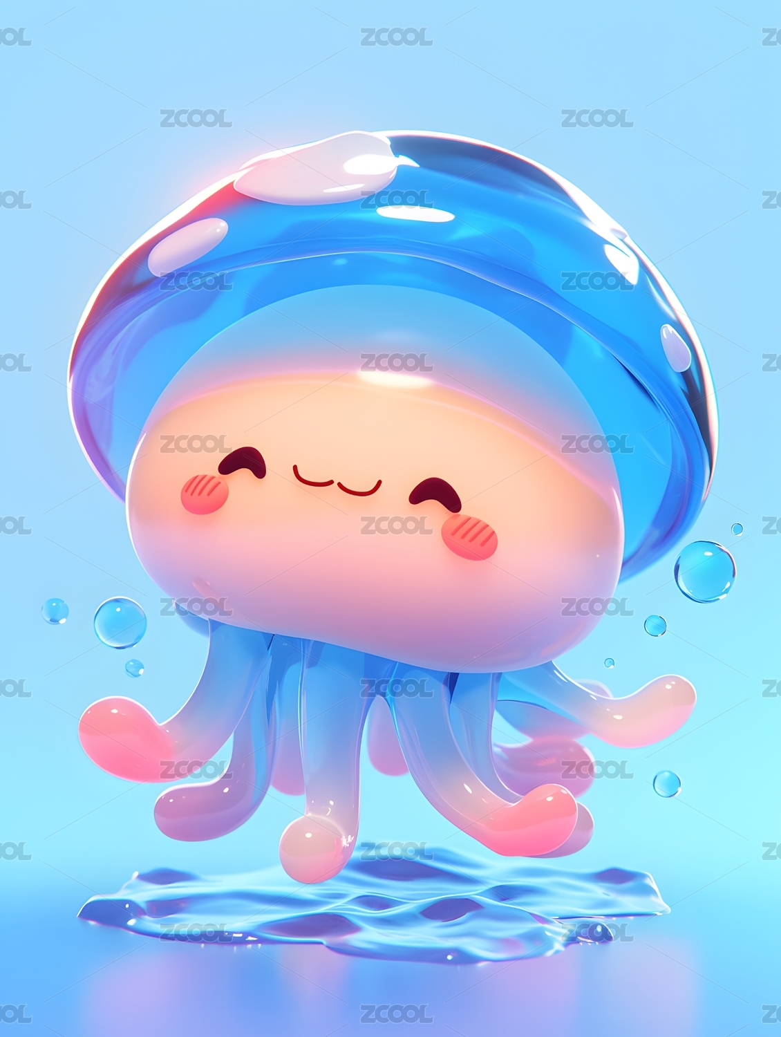 水母,果冻,海,海洋,卡通,童趣,蓝色,漂浮,深海,水花