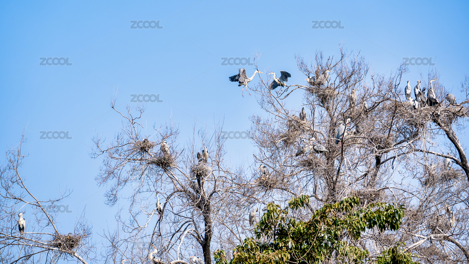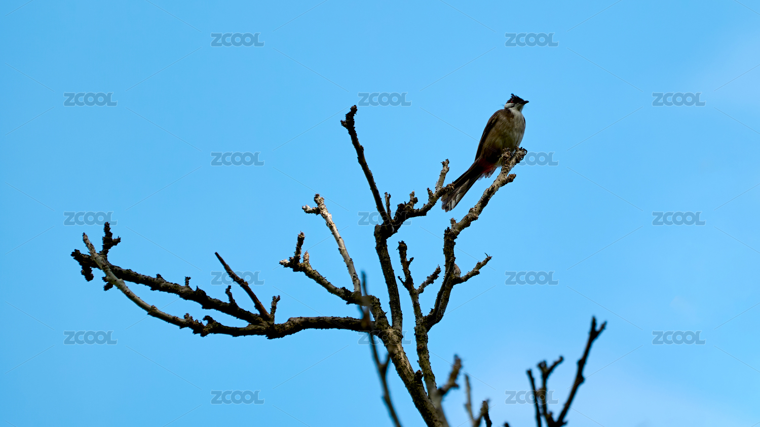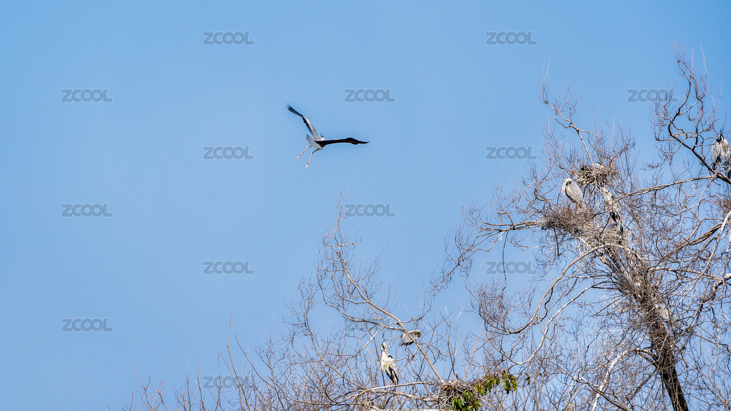 冬日里蓝色天空下杨树枝头上美丽的喜鹊