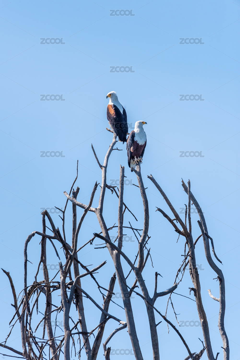 非洲纳瓦沙湖边站在树梢上的一对非洲海雕(Arfican Sea Eagle)