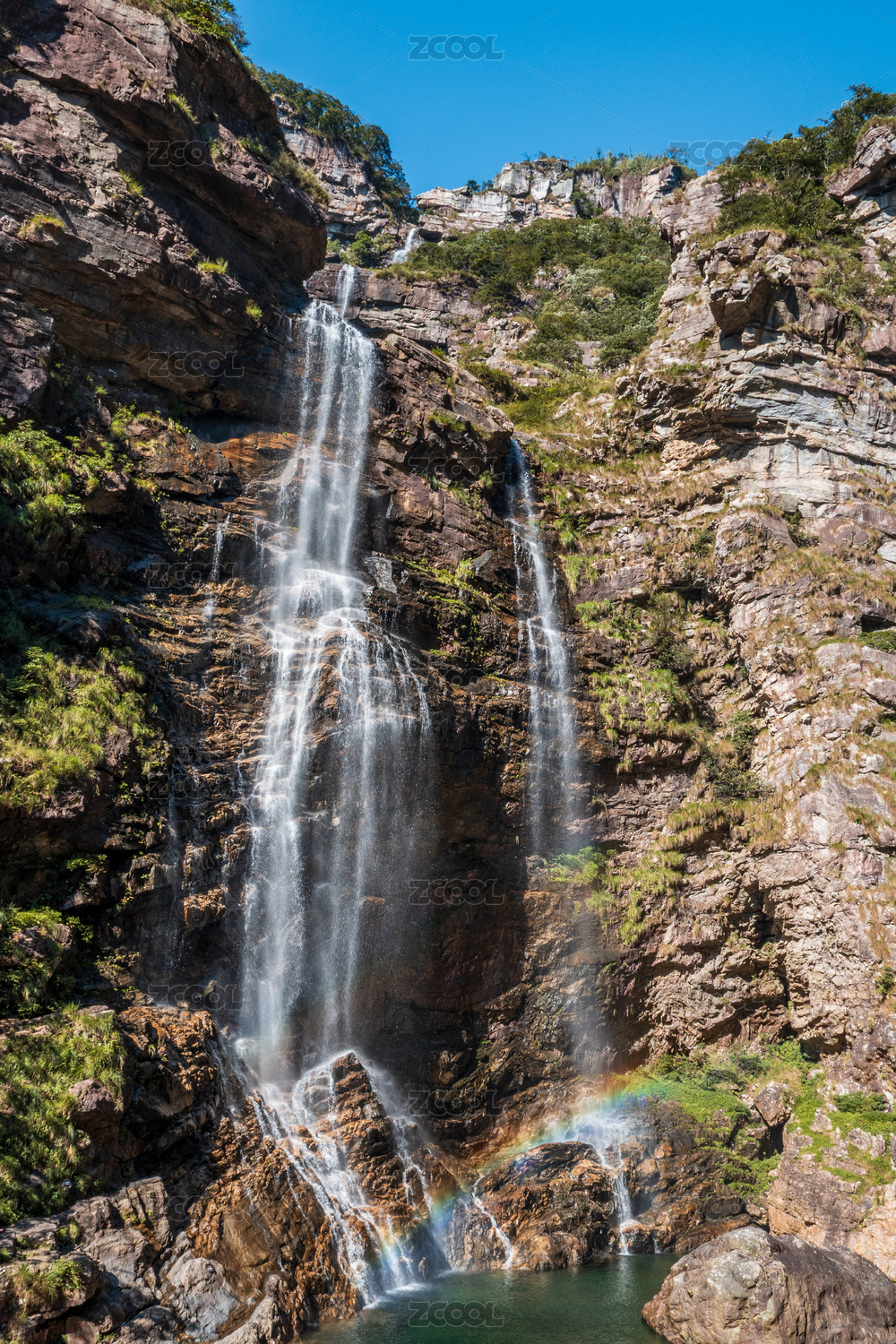云南彝良小草坝悬崖峭壁瀑布自然风光