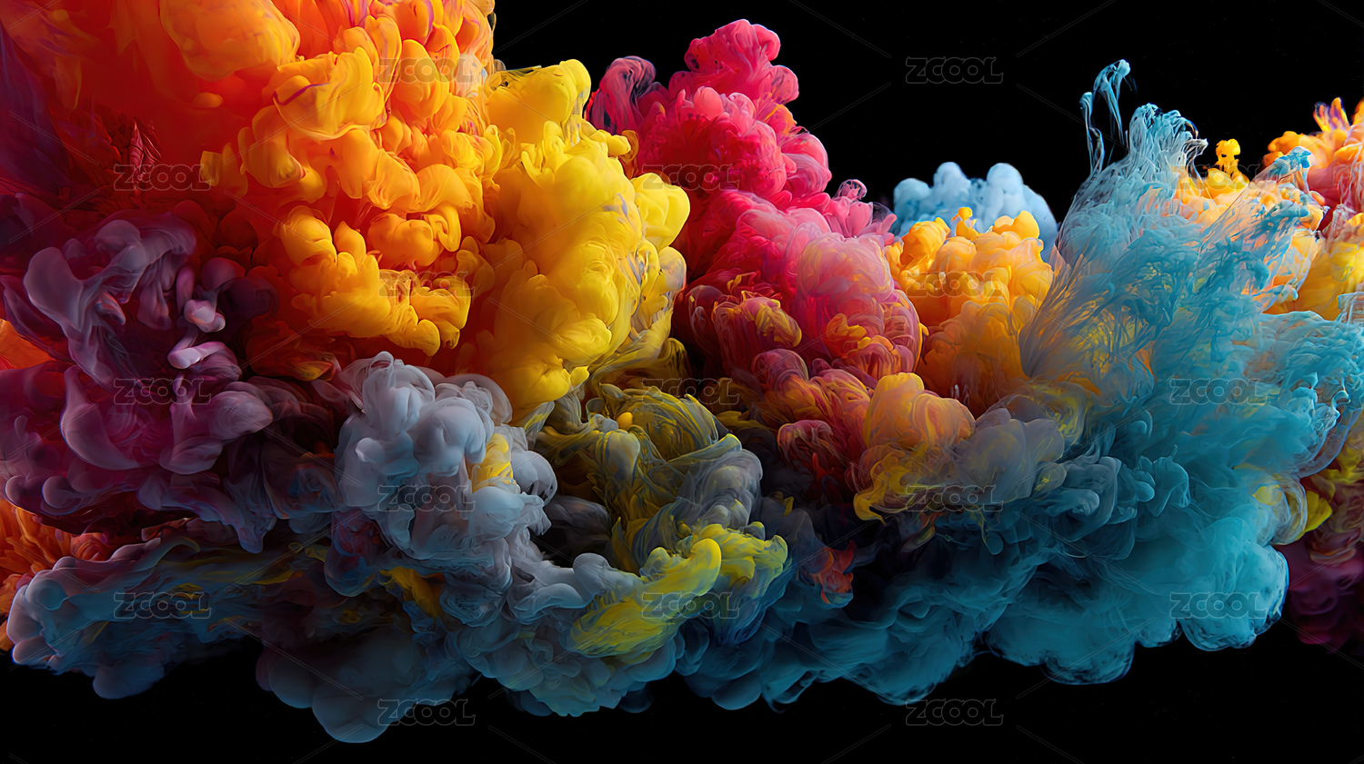 颜色,烟雾,蓝色,橙色,黑色背景,抽象,艺术,流动,混合,对比