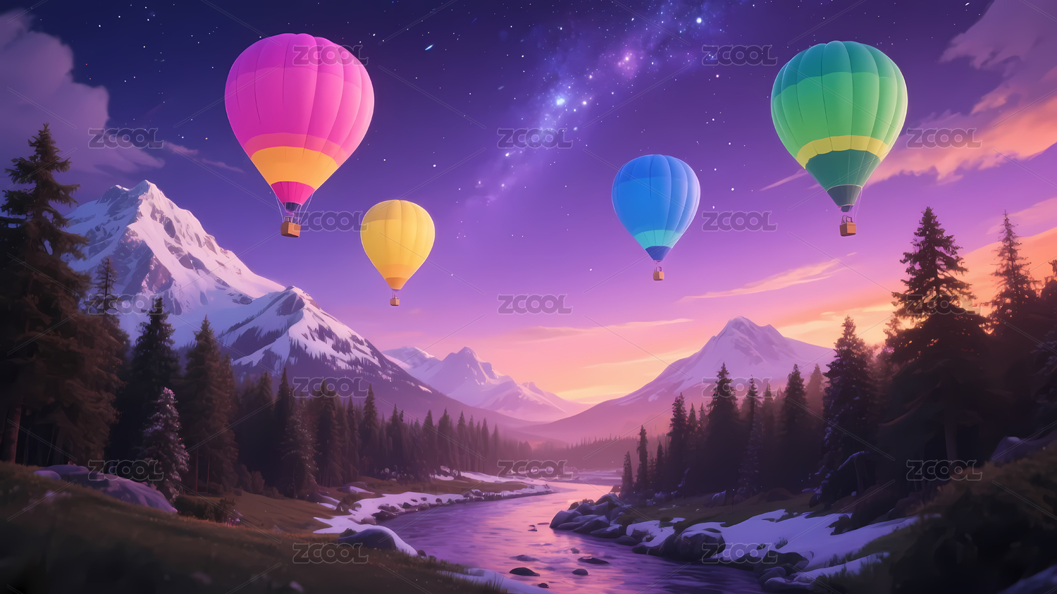 热气球,风景,山河,绿色,蓝天,白云,旷野,宽广