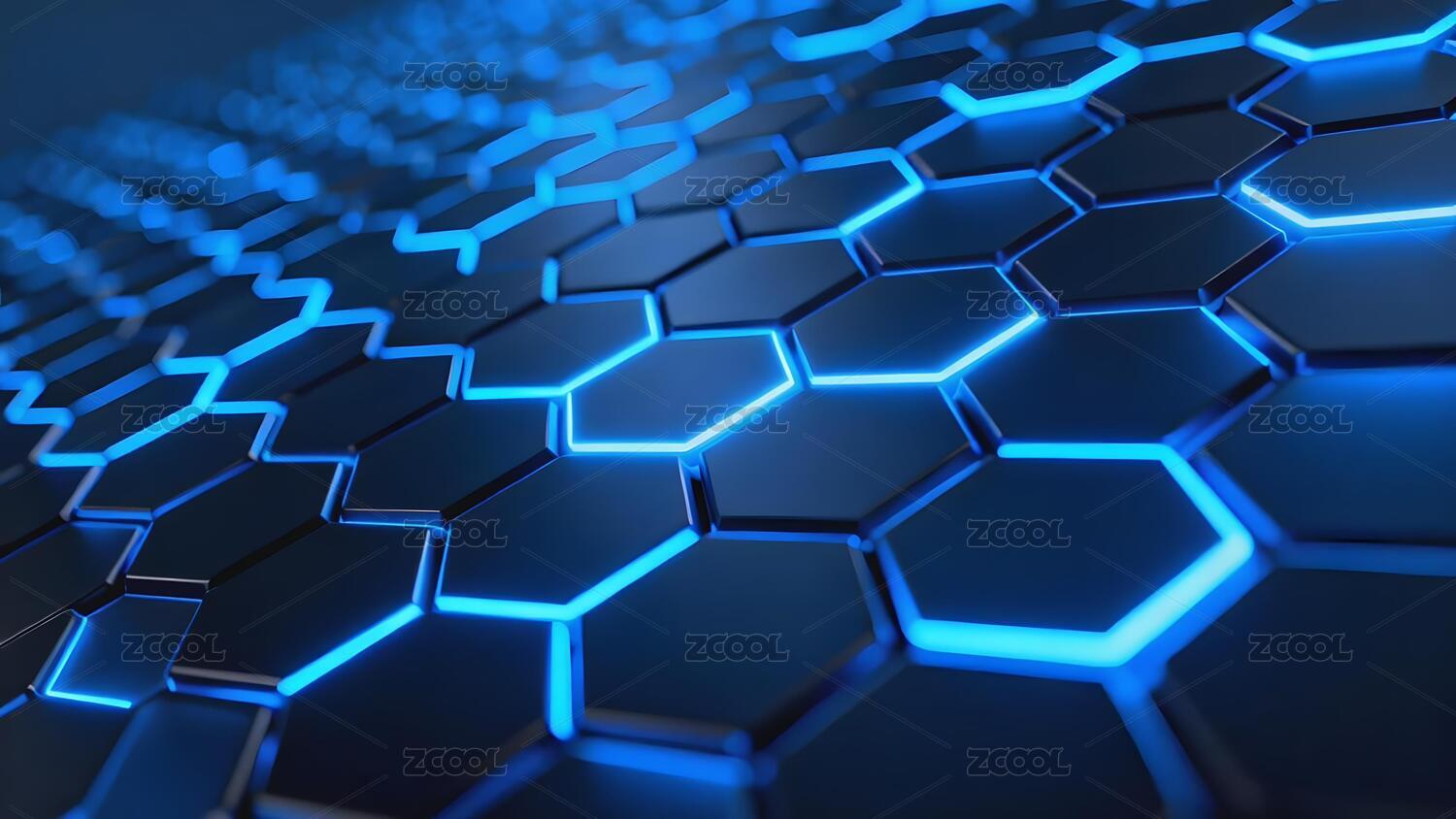 蓝色发光六边形网格图案