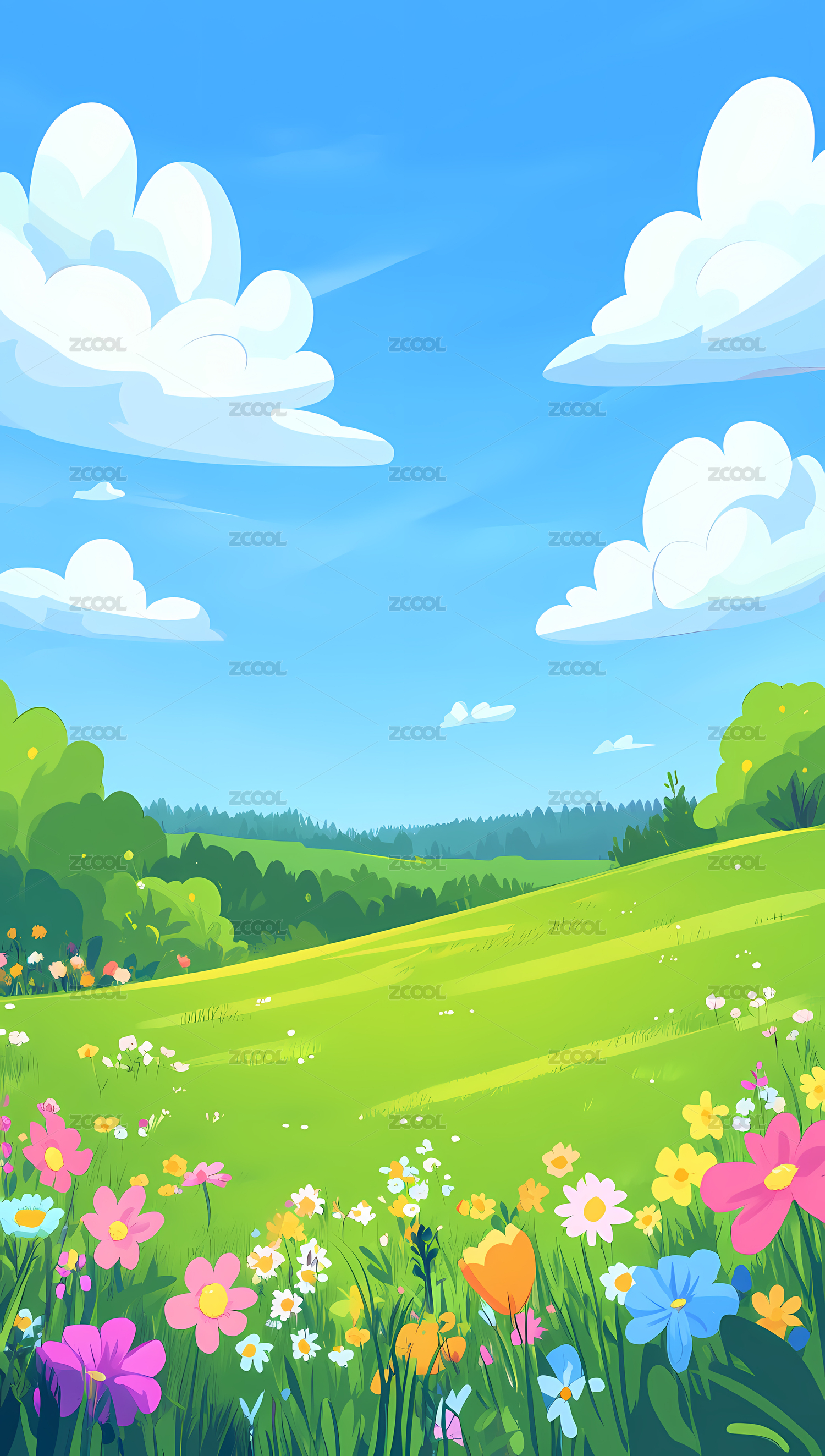 草地山脉山野风光插画