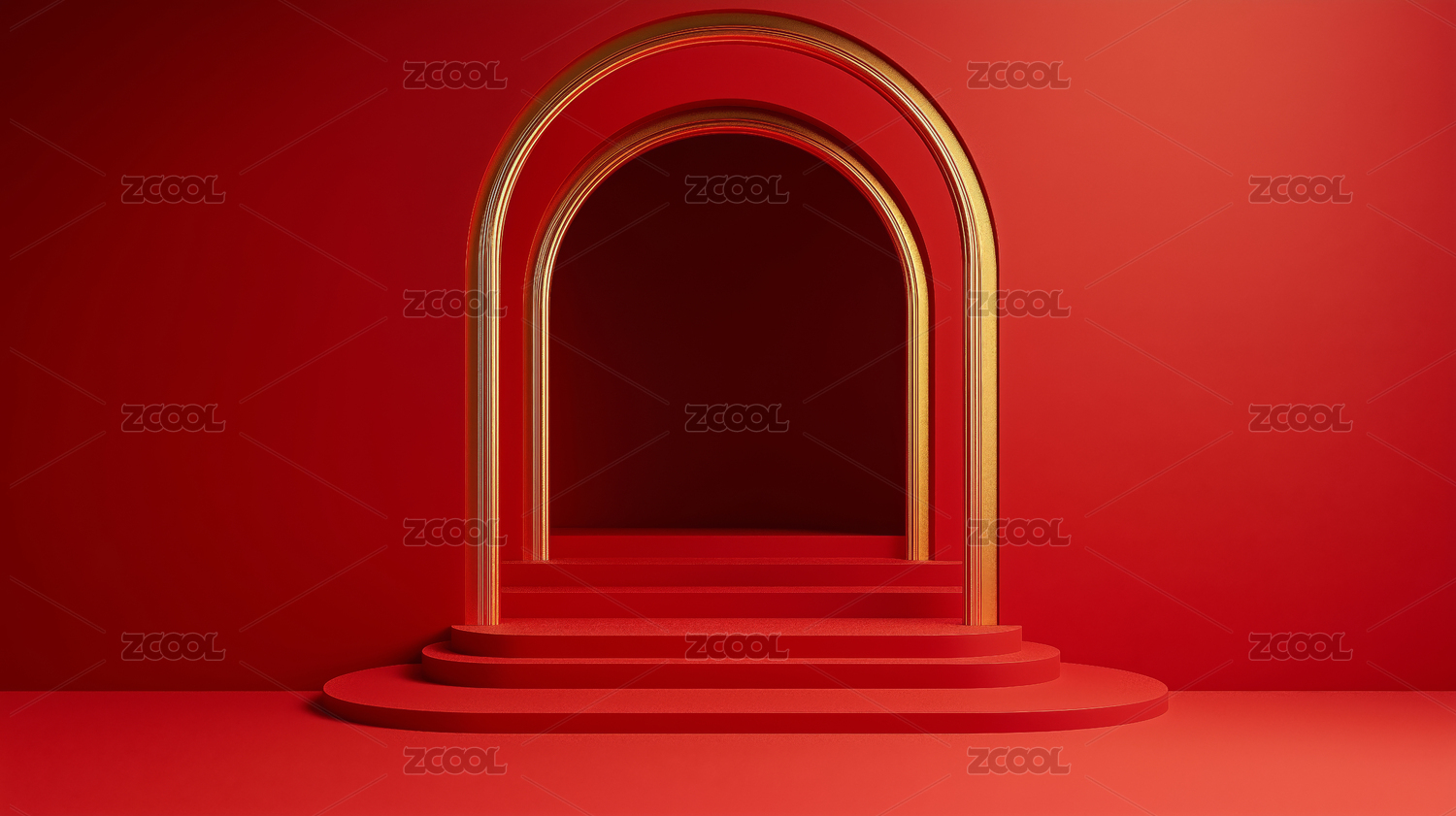 红色背景下的拱门台阶