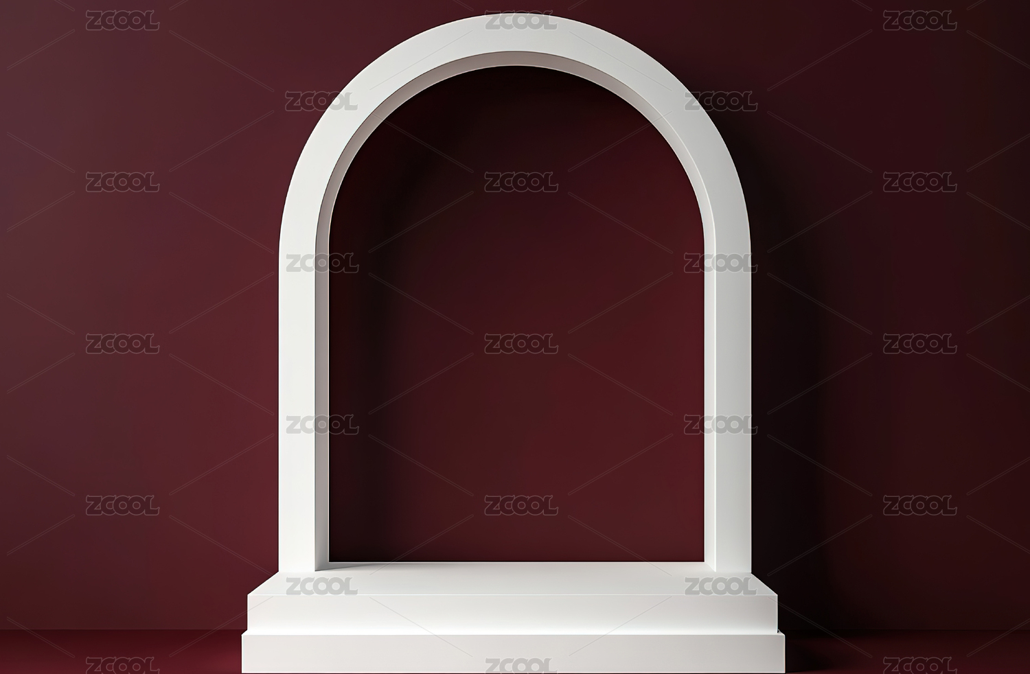 红色背景下的白色拱门台阶