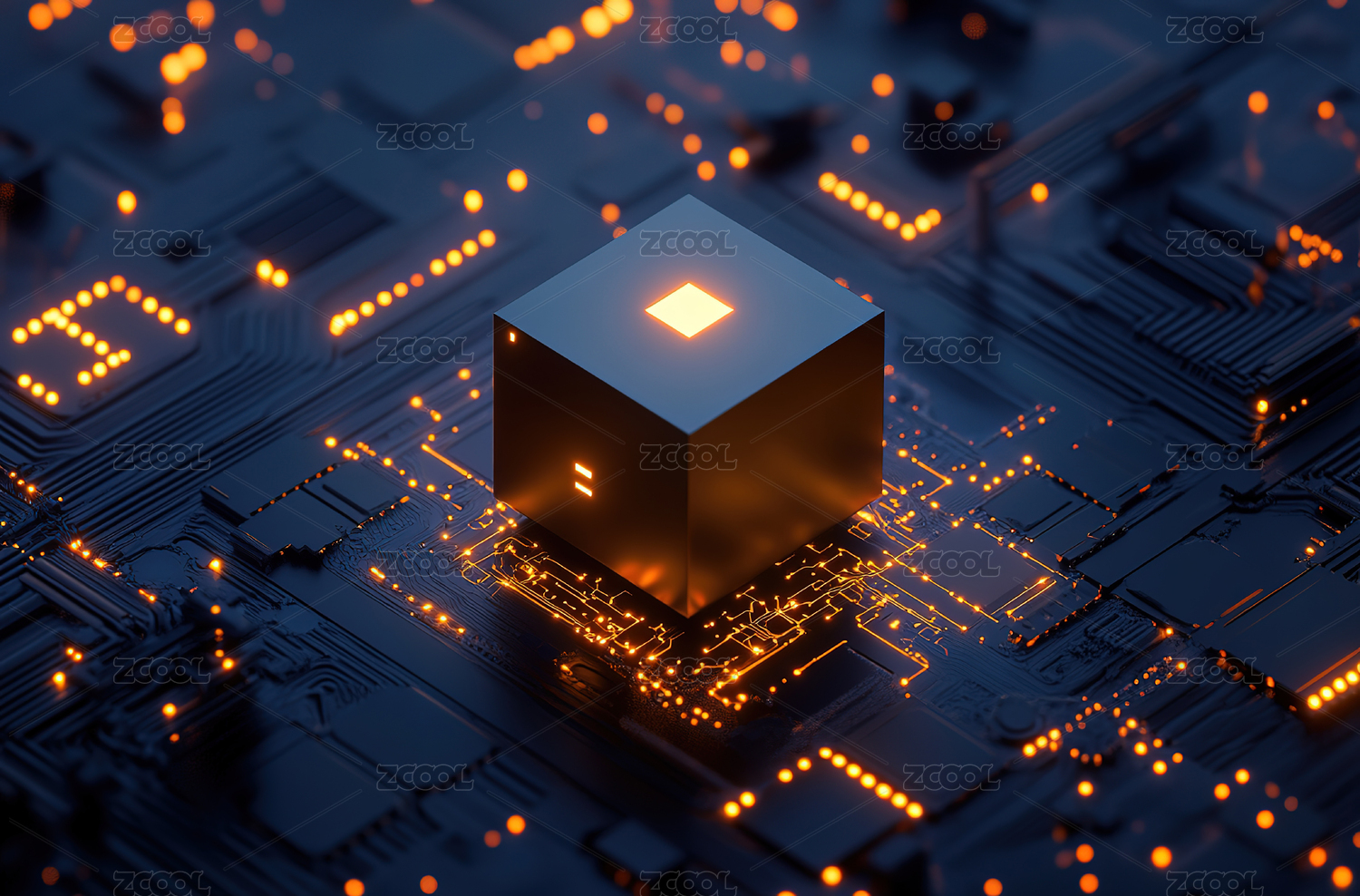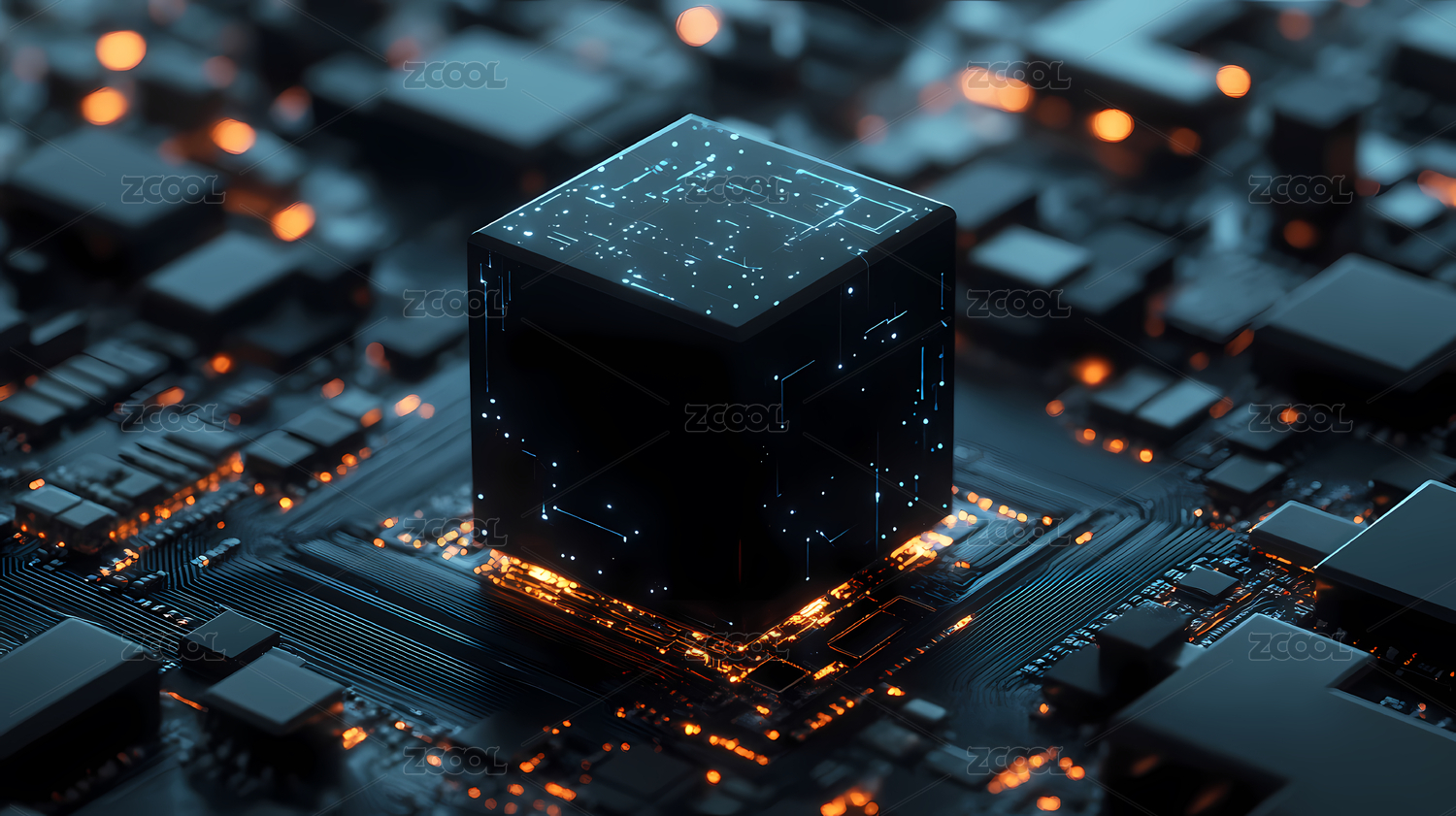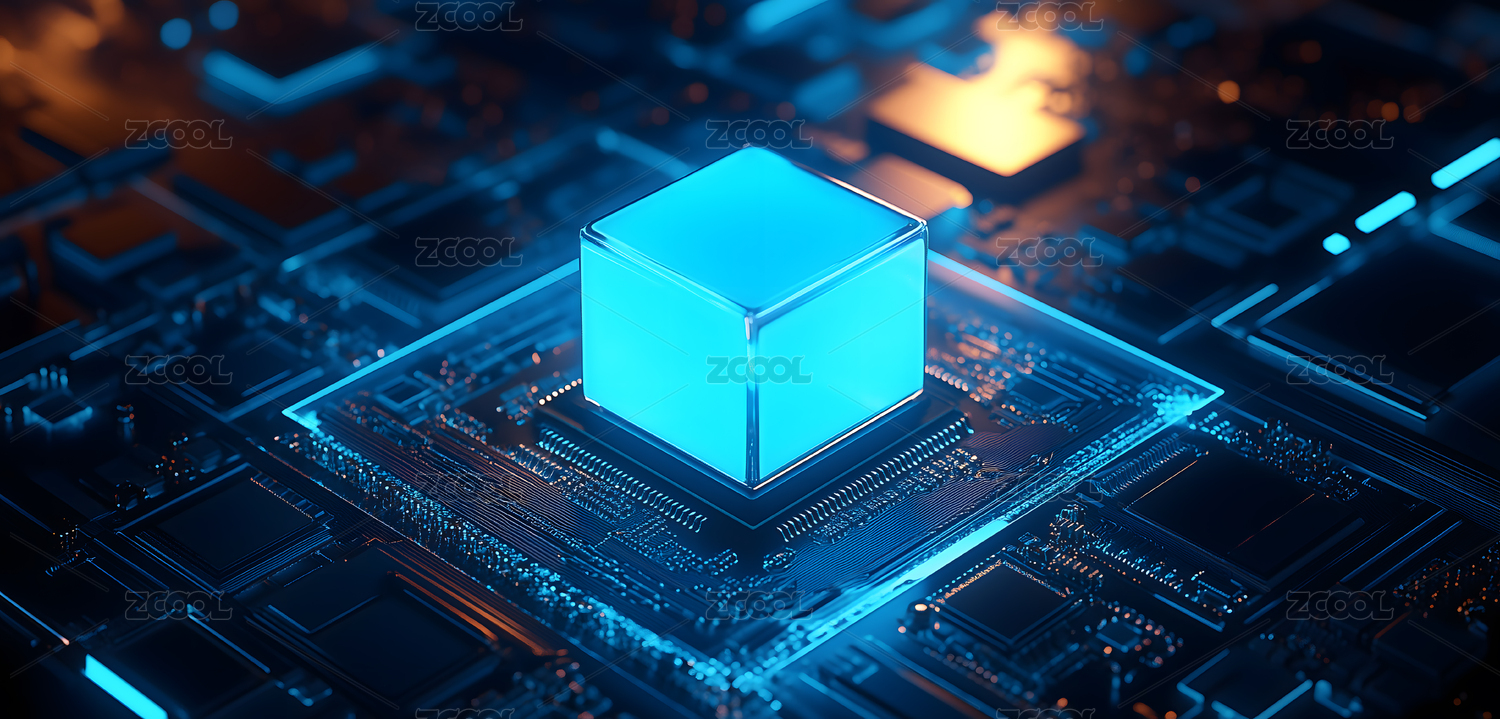 未来科技电路中的黑色立方体