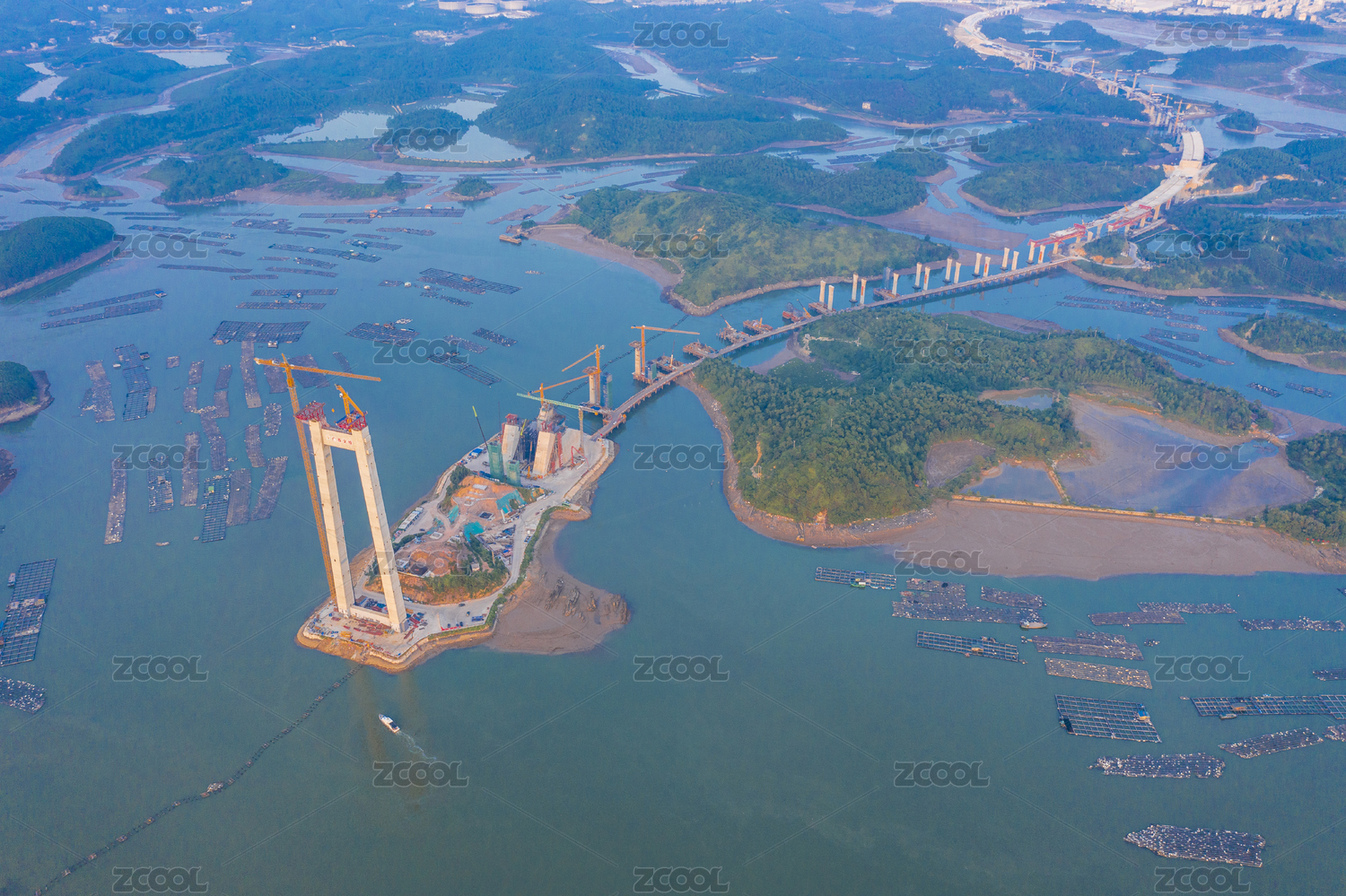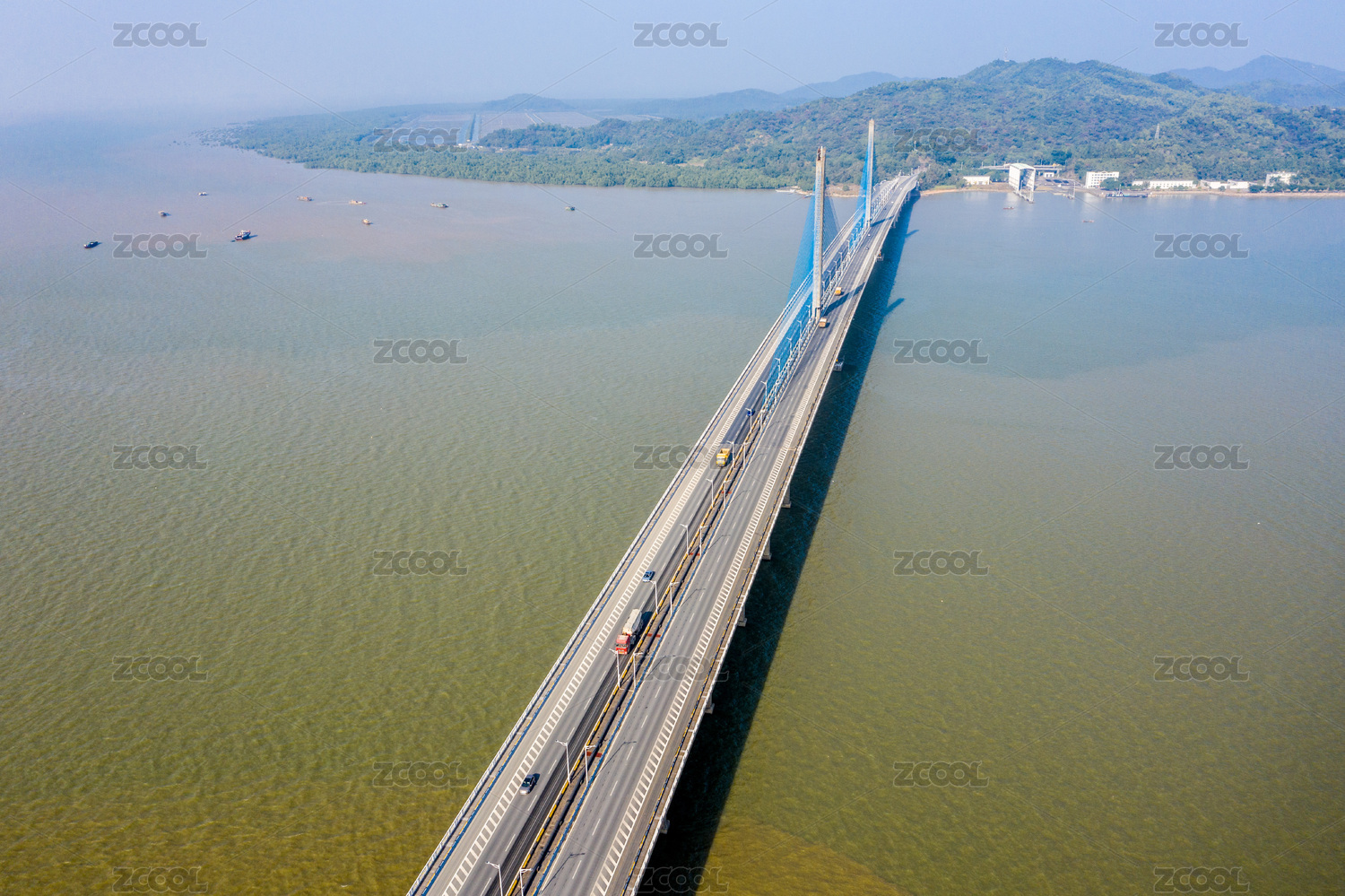 航拍中国广东珠海淇澳岛淇澳大桥风光