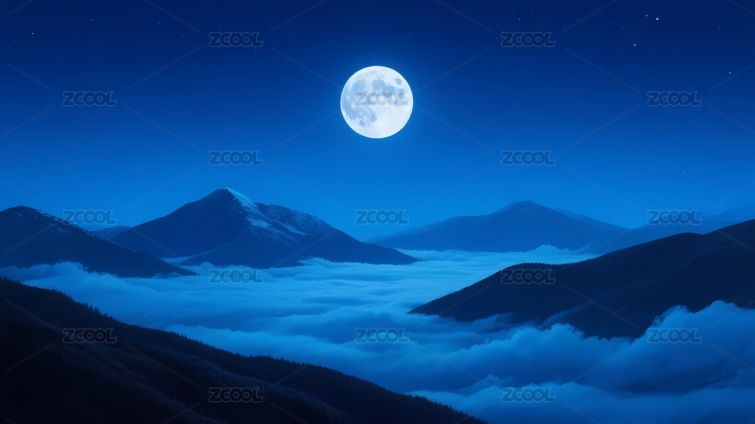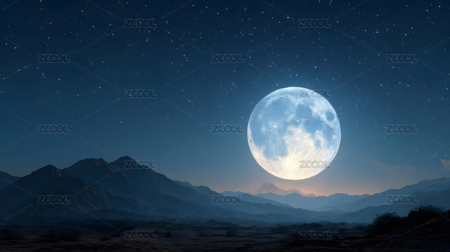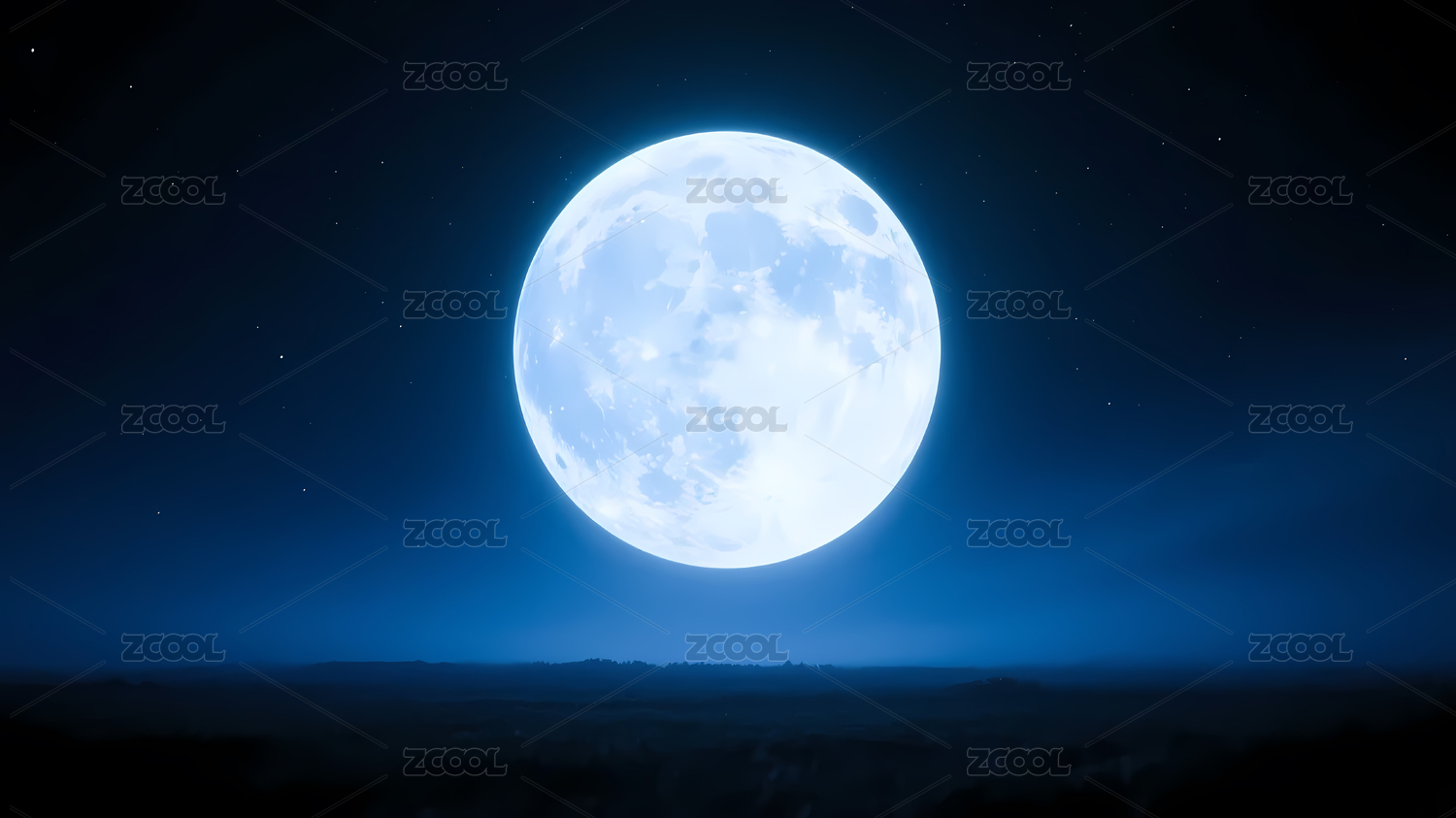 蓝白满月与深蓝星空背景
