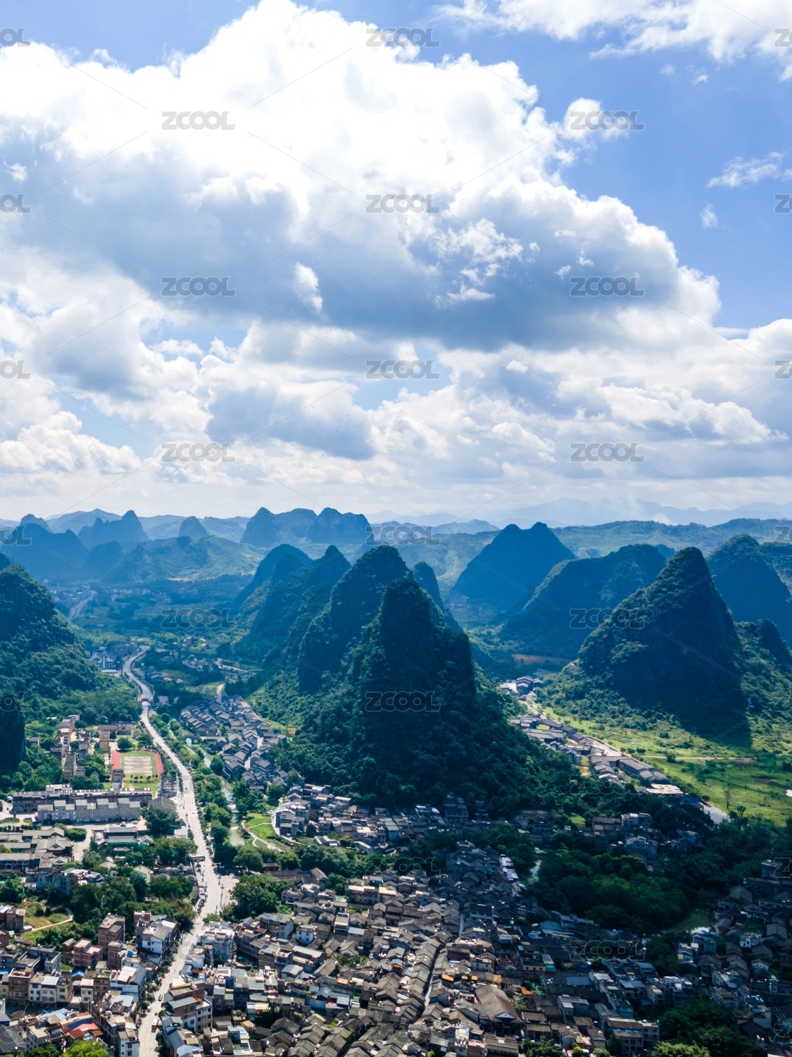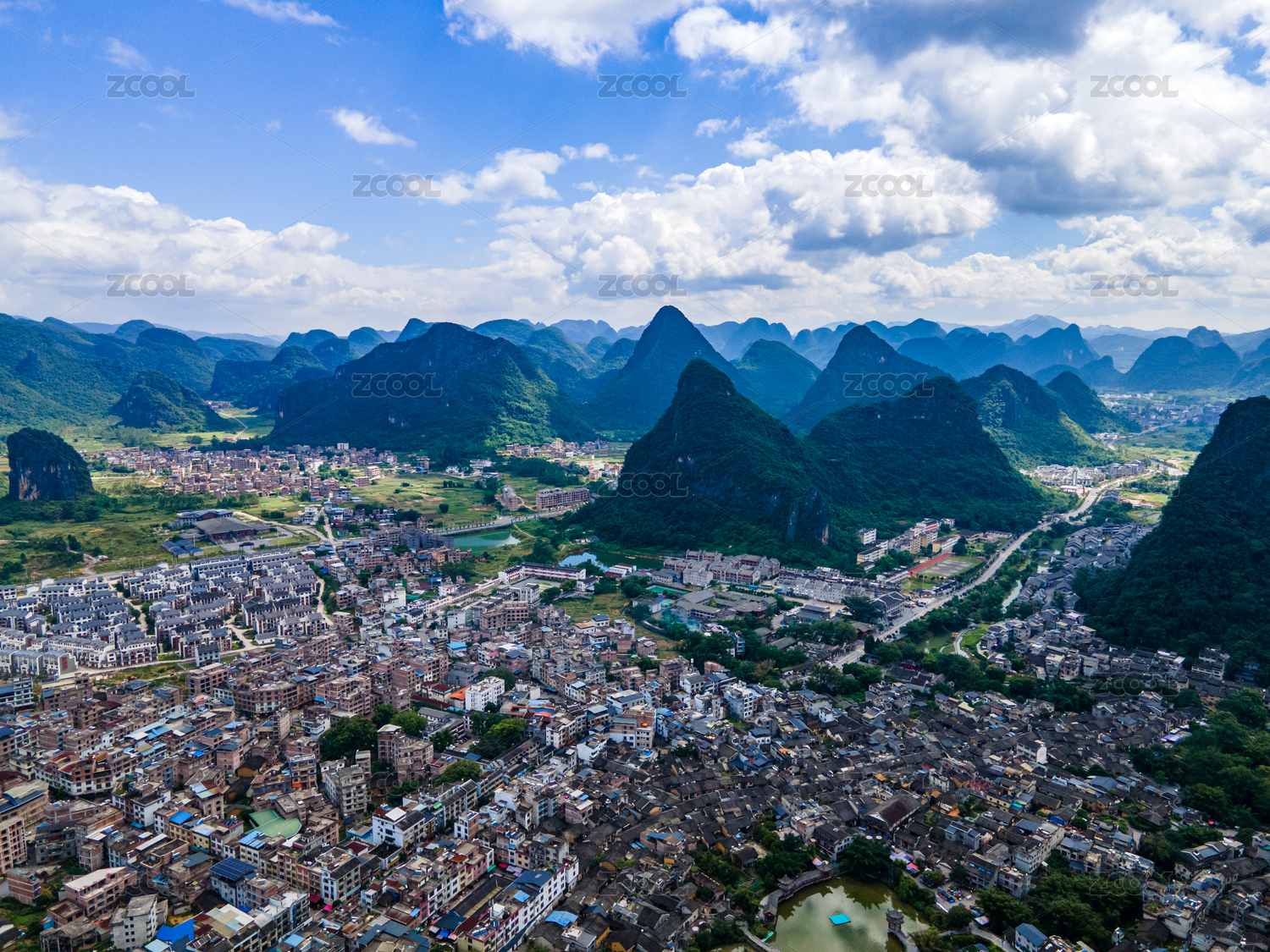 桂林阳朔兴坪古镇漓江沿岸自然风光山水航拍
