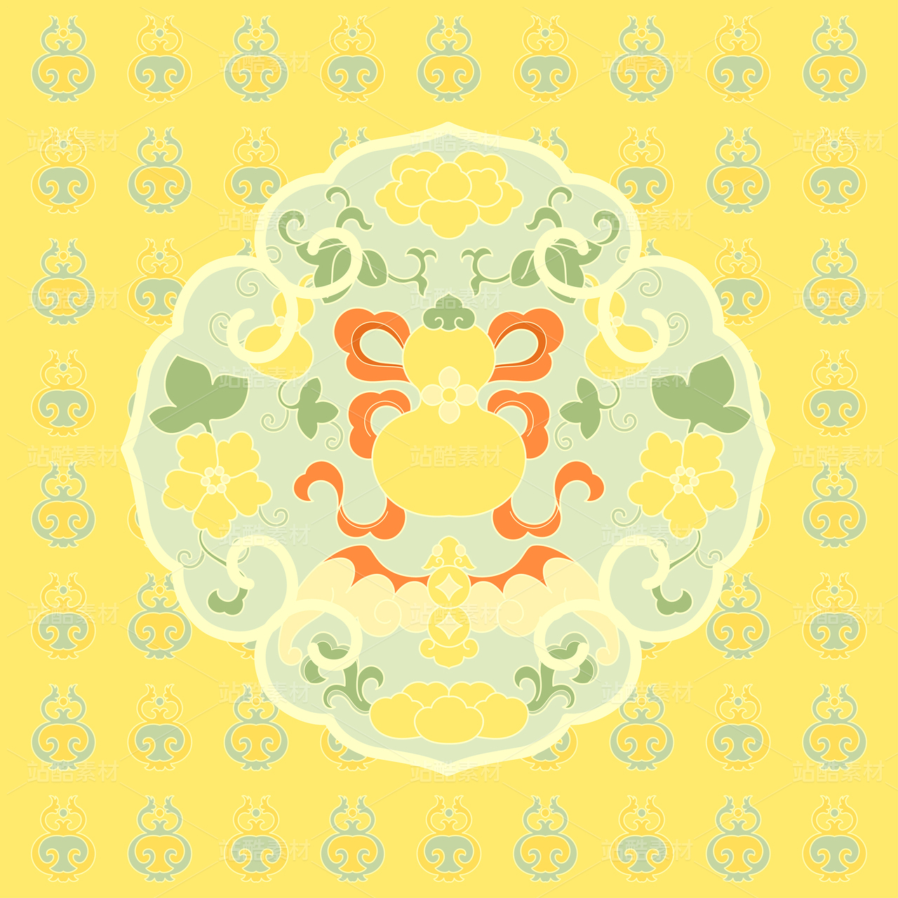 蝙蝠葫芦飘带牡丹福禄吉祥如意中国纹样插画