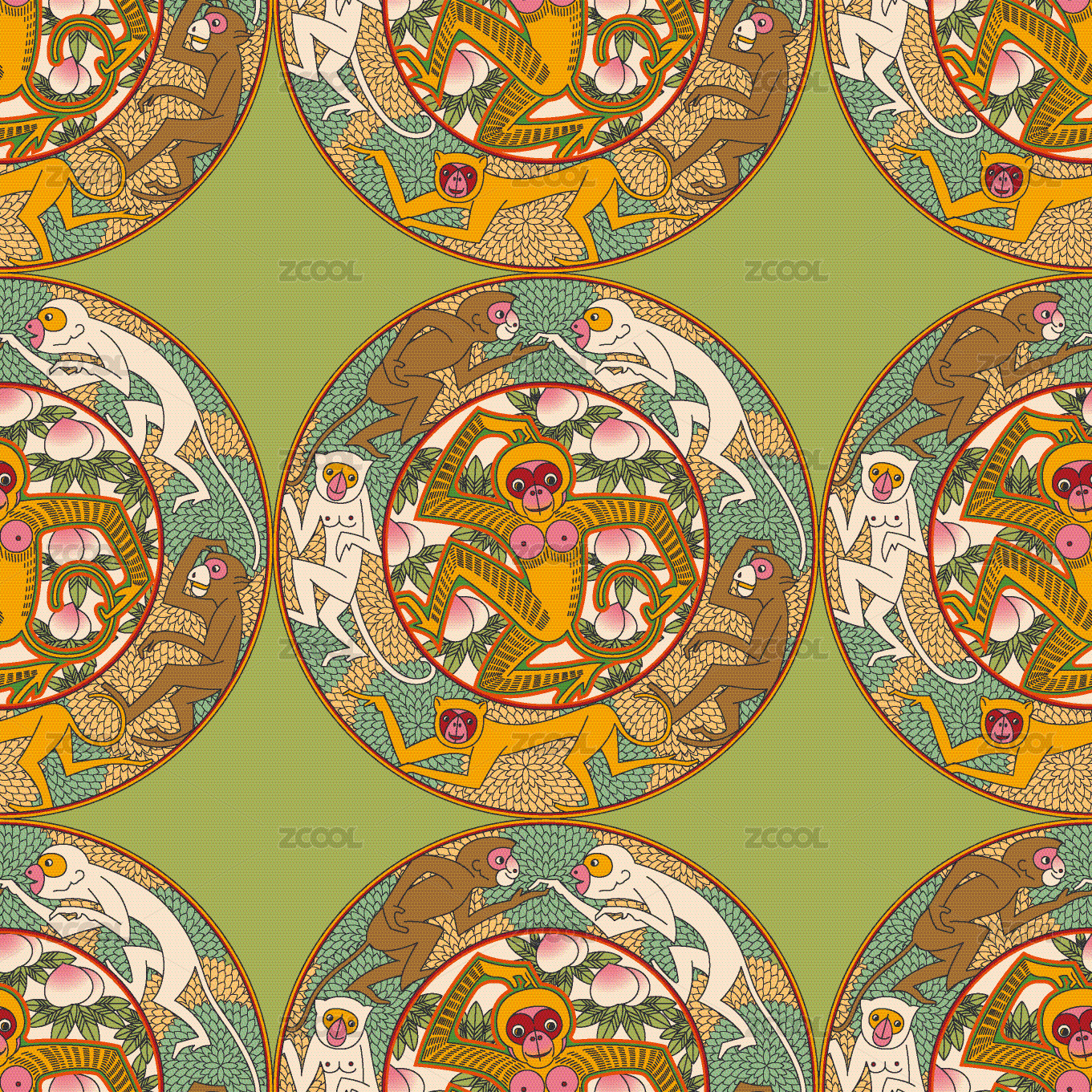 敦煌无缝拼接圆形花纹穹庐宝箱花纹装饰纹理