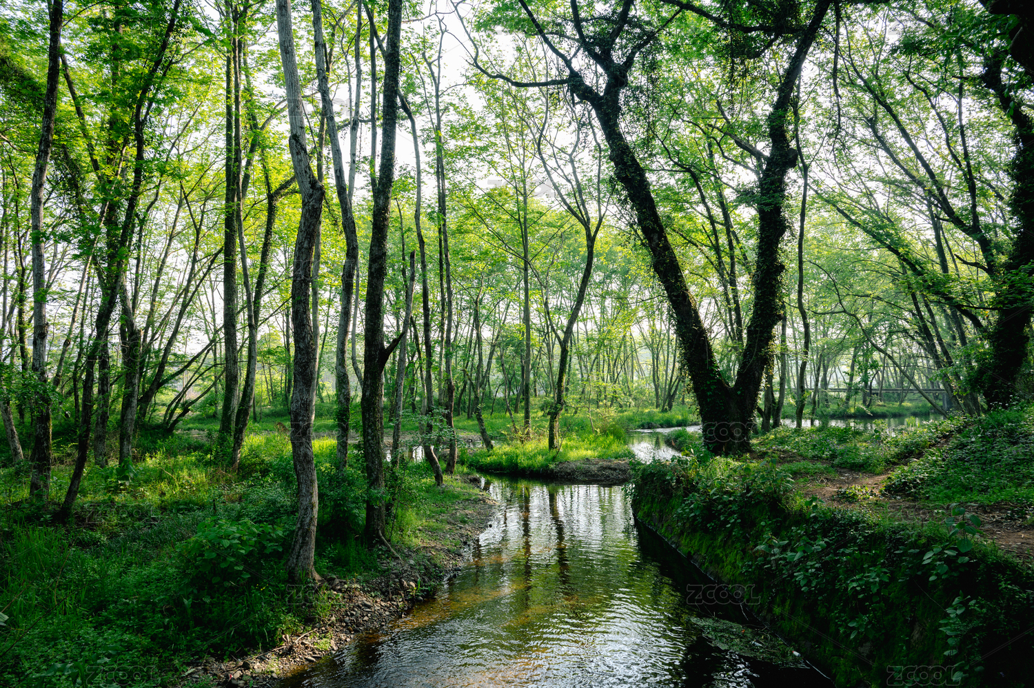 大自然绿色树林森林绿野仙踪小河溪流独木桥