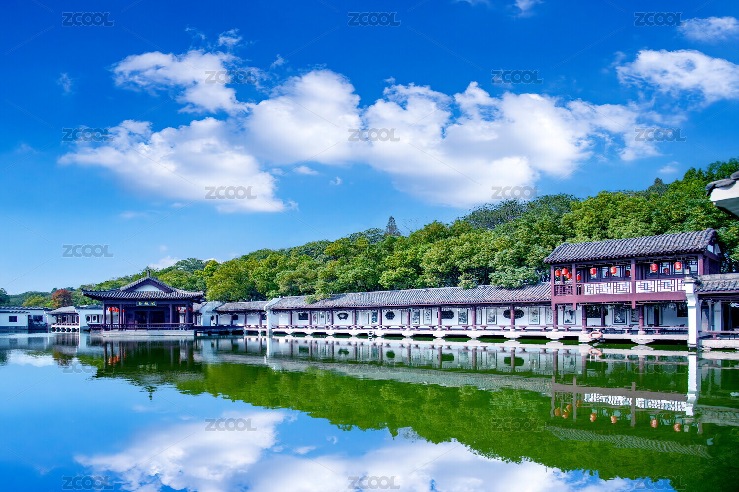 湖北荆州九老仙都湘东苑南北朝园林湖畔回廊