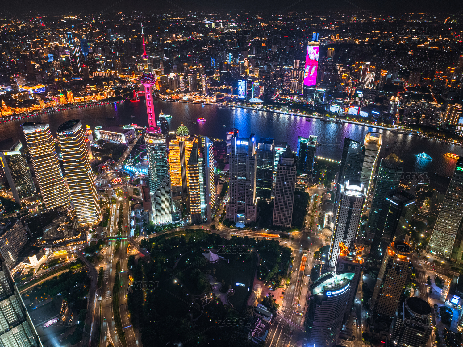 航拍上海,上海夜景,上海陆家嘴,陆家嘴夜景,上海内透,城市亮化,虹口区,静安区夜景,黄浦江,摩天大楼