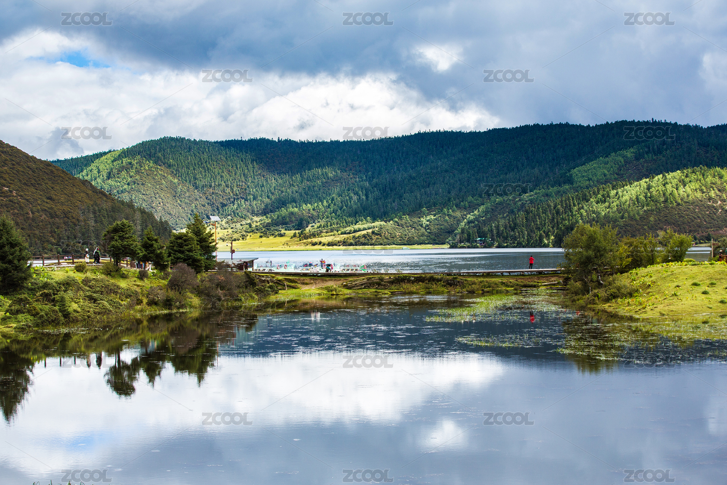 纳帕海,迪庆,香格里拉,湖泊,水,山,天空,白云,倒影,建筑