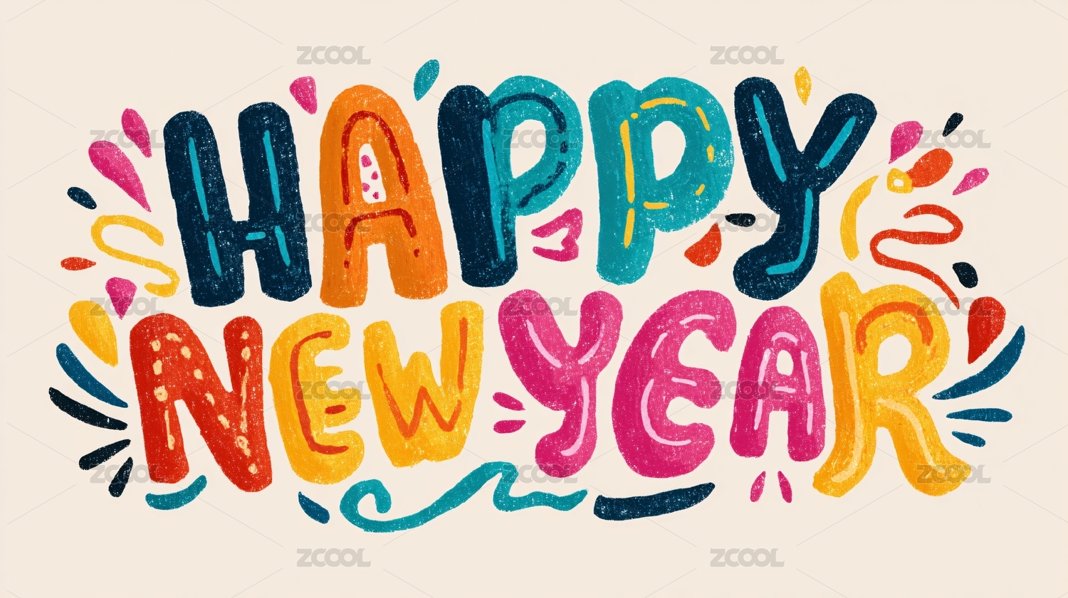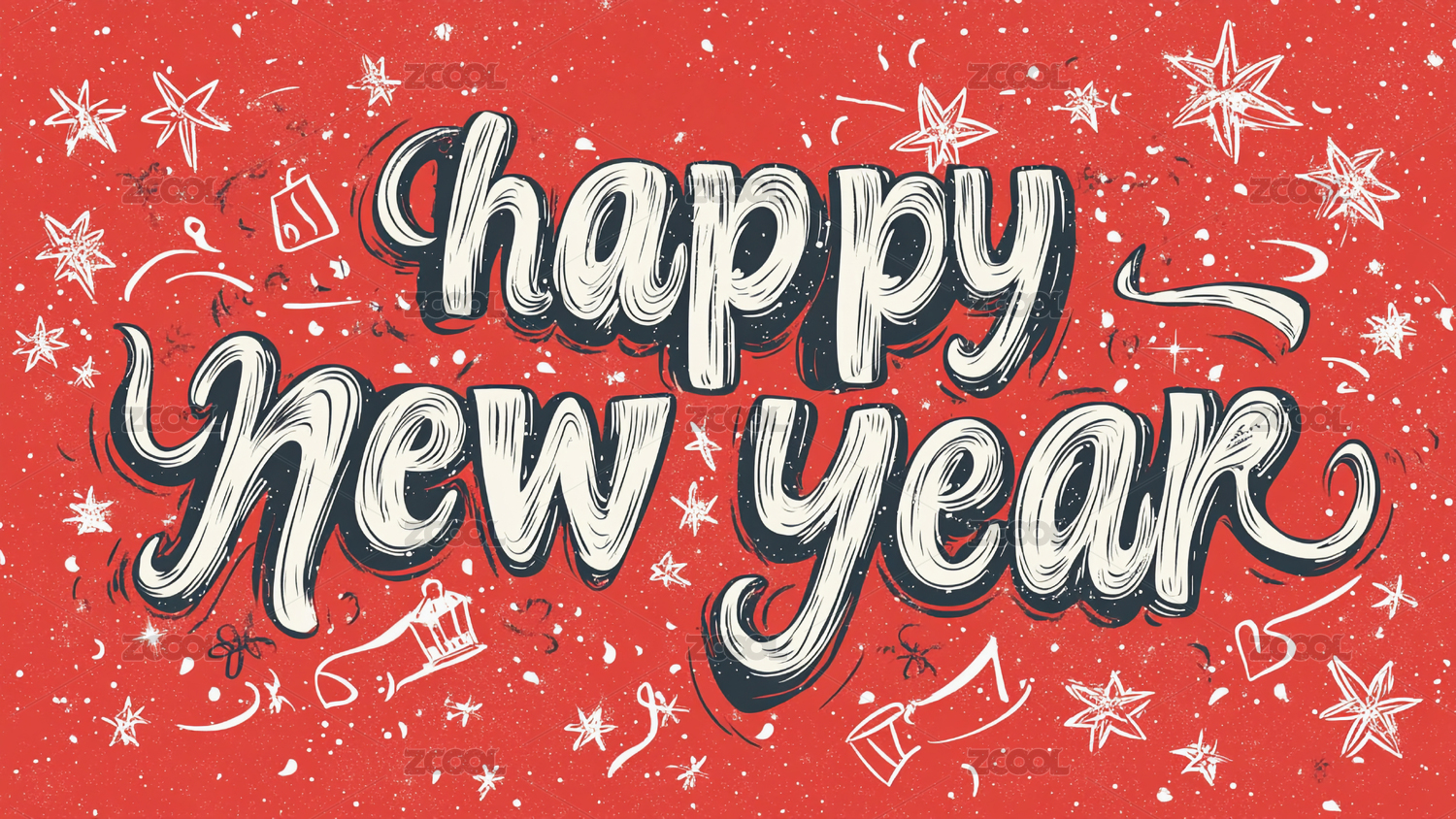 happy new year 手写字体